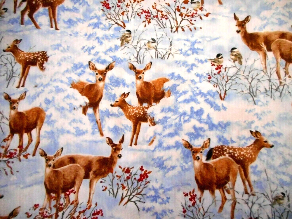 Christmas Fabric By The Yard Natures Holiday Deer Fawn in Snow Blue Cotton #28