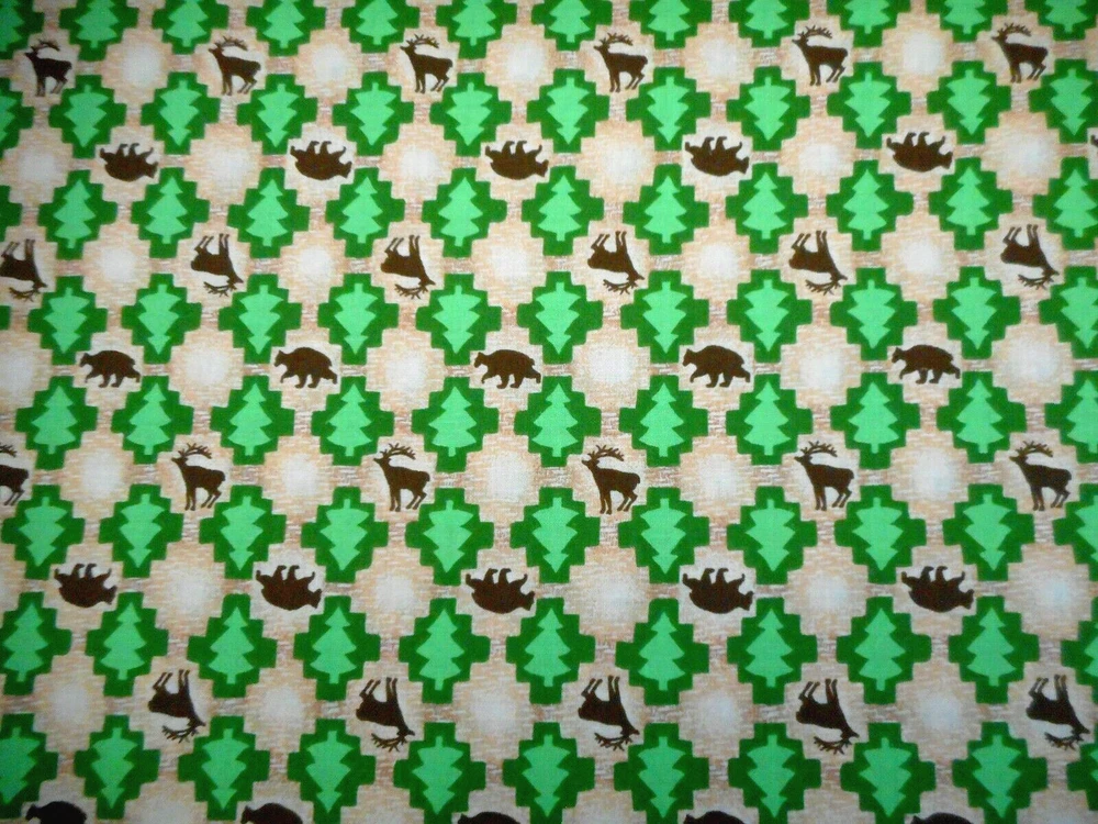 This is a very nice fabric that is 100% cotton. This fabric is out of print. It has brown deer & bears with green Christmas trees on a mottled beige background. READ: Because computer monitors show colors and shades differently, the fabric colors can vary from the photos. If you have any questions regarding this, please contact me before p urchasing the item. I have been a quilter for 30 years and am an accomplished seamstress & would be happy to answer any questions you might have. This is for a 1 Yard of Fabric. If you purchase more than 1 Yard, I will give you one continuous cut. If you have a problem with anything you purchase from me, please contact me before leaving neutral or negative feedback and I will work it out with you. Payment is due within 48 hours. If payment isn't received within 5 days, it will automatically go to Ebay's resolution center for non-payment. INSTRUCTIONS FOR COMBINED SHIPPING: I Do combine shipping. You must add the items to your shopping cart and request an invoice from me using the REQUEST TOTAL BUTTON BEFORE completing the payment process, or I won't be able to combine your shipping. Payment is due upon receipt of your invoice. Thank you for looking and God bless you and your family. IF THERE IS A PROBLEM WITH ANY PURCHASE, PLEASE CONTACT ME, THE SELLER, VIA EBAY'S MESSAGING SYSTEM PRIOR TO OPENING A CASE--OPENING A CASE, EVEN IF RESOLVED SMOOTHLY, CAN HURT THE SELLER'S RATINGS. THANK YOU