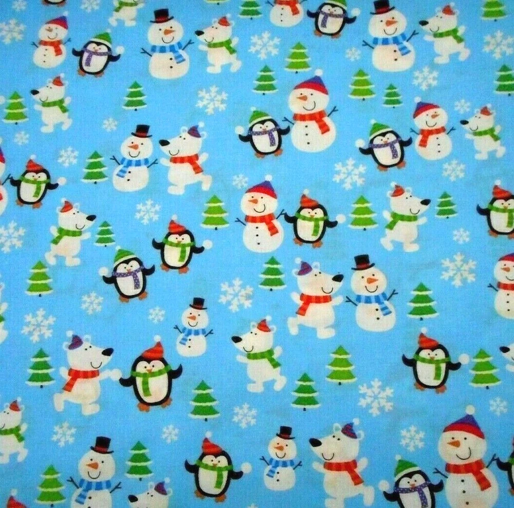 This is a very nice fabric that is 100% cotton. It has happy white dogs, snowmen & penguins with green trees & white snowflakes on a blue background. READ: Because computer monitors show colors differently, the fabric colors can vary from the photos. If you have any questions regarding this, please contact me before p urchasing the item. I have been a quilter for 30 years and am an accomplished seamstress & would be happy to answer any questions you might have. This is for a 1 Yard of Fabric. If you purchase more than 1 Yard, I will give you one continuous cut. If you have a problem with anything you purchase from me, please contact me before leaving neutral or negative feedback and I will work it out with you. Payment is due within 48 hours. If payment isn't received within 5 days, it will automatically go to Ebay's resolution center for non-payment. INSTRUCTIONS FOR COMBINED SHIPPING: I Do combine shipping. You must put your items into your shopping cart and request an invoice from me using the request total button before completing the payment process. IF YOU'RE UNABLE TO COMBINE YOUR SHIPPING, PLEASE CONTACT ME. Payment is due upon receipt of your invoice. Thank you for looking and God bless you and your family. IF THERE IS A PROBLEM WITH ANY PURCHASE, PLEASE CONTACT ME, THE SELLER, VIA EBAY'S MESSAGING SYSTEM PRIOR TO OPENING A CASE--OPENING A CASE, EVEN IF RESOLVED SMOOTHLY, CAN HURT THE SELLER'S RATINGS. THANK YOU