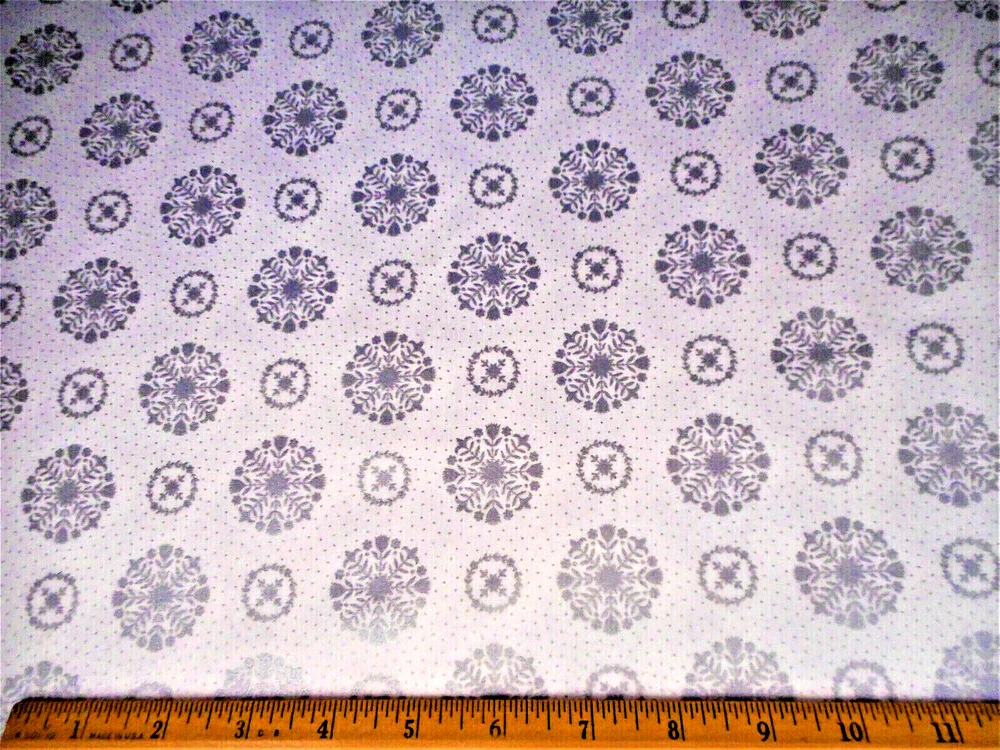 This is a very nice fabric that is 100% cotton. This is a premium quilting cotton by Moda. It has metallic silver snowflakes on a white background. This was very difficult to photograph & it's much more beautiful than the photos,. READ: Because computer monitors show colors and shades differently, the fabric colors can vary from the photos. If you have any questions regarding this, please contact me before p urchasing the item. I have been a quilter for 30 years and am an accomplished seamstress & would be happy to answer any questions you might have. This is for a 1 Yard of Fabric. If you purchase more than 1 Yard, I will give you one continuous cut. THERE IS ANOTHER 1 5/8 YARD ATTACHED TO THIS FABRIC & IF YOU WOULD ALSO LIKE IT PLEASE CONTACT ME BEFORE PURCHASING & PAYING FOR THE ITEM SO I CAN ADD IN THE EXTRA 1 5/8 YARD ($16.25) & COMBINE SHIPPING FOR YOU. If you have a problem with anything you purchase from me, please contact me before leaving neutral or negative feedback and I will work it out with you. Payment is due within 48 hours. If payment isn't received within 5 days, it will automatically go to Ebay's resolution center for non-payment. INSTRUCTIONS FOR COMBINED SHIPPING: I Do combine shipping. You must put your items into your shopping cart and request an invoice from me using the request total button before completing the payment process. IF YOU'RE UNABLE TO COMBINE YOUR SHIPPING, PLEASE CONTACT ME. Payment is due upon receipt of your invoice. Thank you for looking and God bless you and your family. IF THERE IS A PROBLEM WITH ANY PURCHASE, PLEASE CONTACT ME, THE SELLER, VIA EBAY'S MESSAGING SYSTEM PRIOR TO OPENING A CASE--OPENING A CASE, EVEN IF RESOLVED SMOOTHLY, CAN HURT THE SELLER'S RATINGS. THANK YOU