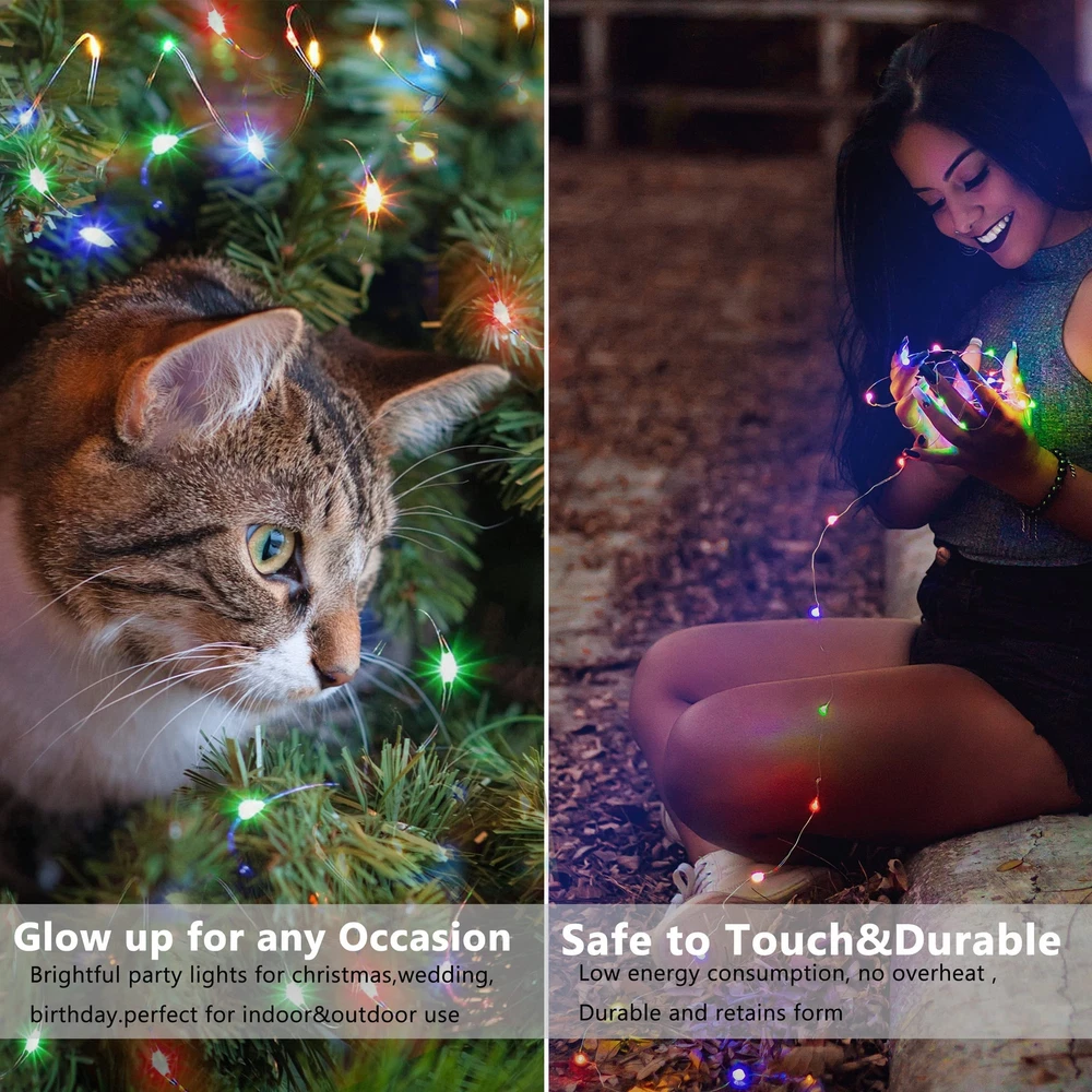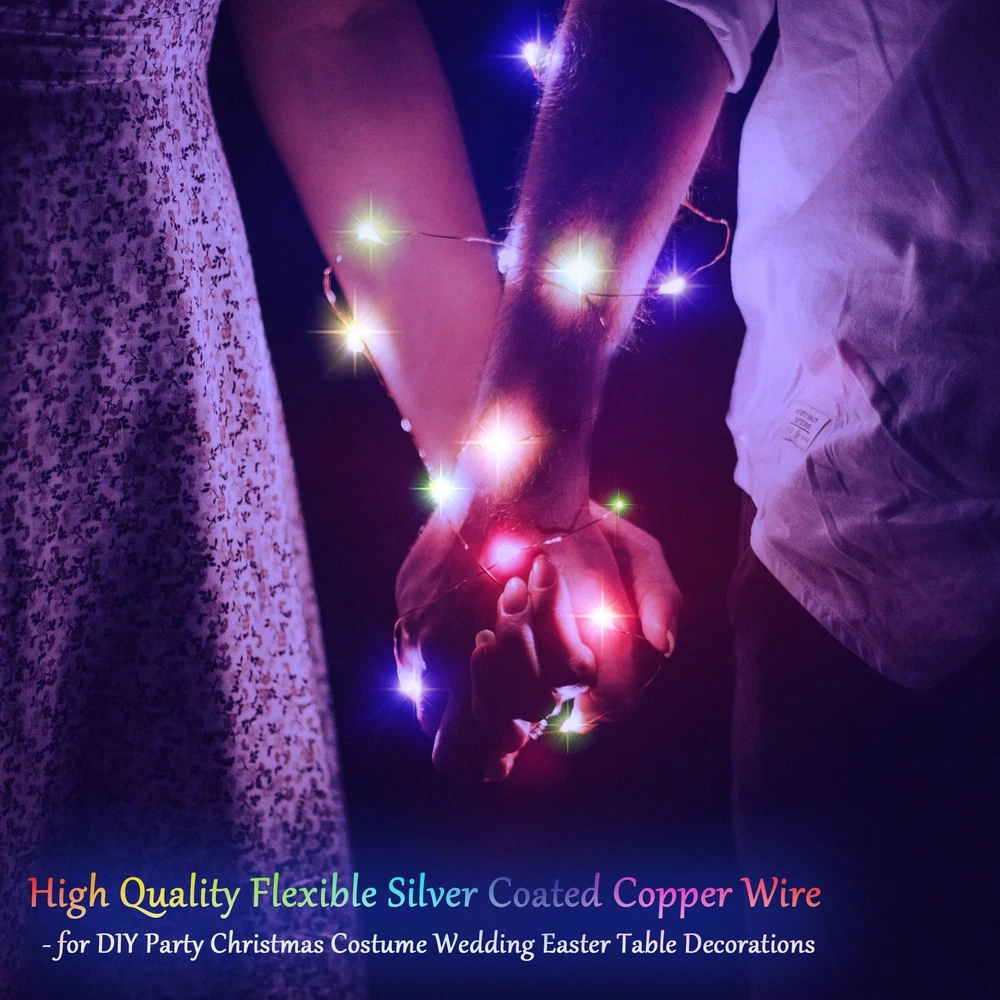 15 Units of Multicolor Fairy Lights - CR2032*2 batteries included,48 hours long battery life, longer working time than other's 24 hour fairy string lights . Durable wire and bright bulbs - Battery fairy lights are 7 feet in length, made of coated flexible silver wire. Wire is thin, almost invisible to see from distance. 20 mini led bulbs are equipped with big and bright chips, 4 inch spacing between led bulbs, 0.66ft lead wire between the battery pack and the first light bulb. IP65 waterproof - The light string is IP65 waterproof, could be immersed in water without worry of short circuit (Only the string lights is waterproof, the battery pack is not waterproof) Safe to use - The starry string lights are low energy consumption, no overheat and remain cool after long hours usage, stay safe to touch. Wildly Application - Perfect copper lights for kids room, window, bedroom, picture wall, garden, patio, balcony, corridor, fence, shelf, bistro, pub, cafe, flower shop, mall, new year, birthday, potted landscape, evening party. After service Policy - thankful choose ours product,we definitely value your customer experience, If you have any questions, please feel free to contact us,we’ll always be there for you ,every second,any time.