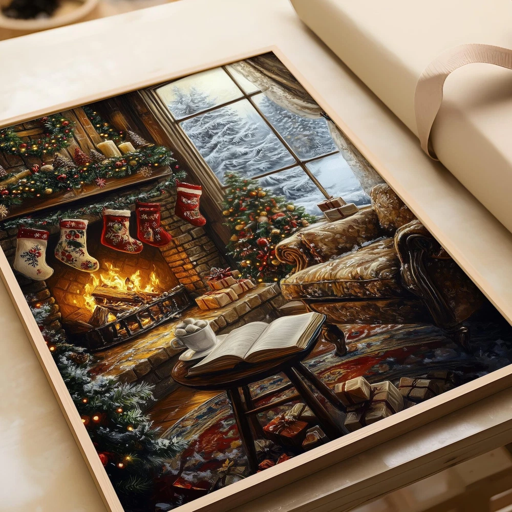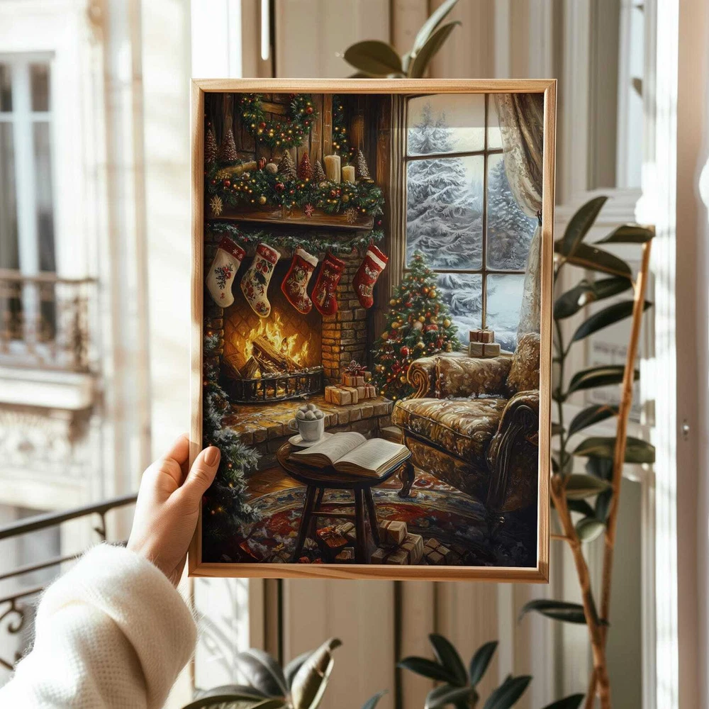 Christmas Fireplace And Book Art Print Cozy Holiday Wall Decor Book Lover Printable Winter Reading Nook Art Material: Premium luster photo paper Print type: Inkjet printing One side printed + The finish provides the highest possible resolution and color saturation + Lasts up to 200 years in color and 400 years in black-and-white + Printed on high-quality resin-coated photo base paper medium + Posters can be hung with double-sided tape, tacks, or framed + Hand washing with a gentle cry cloth is recommended for extended durability I will hand select the best choice of paper for your chosen design to ensure top quality results for a beautiful, bright and luxurious print. All prints are sealed in cellophane slips for protection during transportation, and are shipped in a protective cardboard envelope.