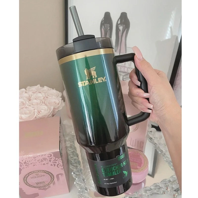 💚Christmas Gift 40oz Stainless Steel H2.0 Flowstate Quencher Tumbler Elphaba💚