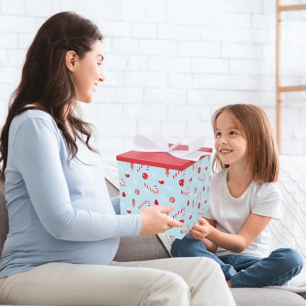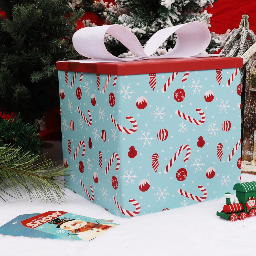 Christmas Gift Box Medium 9x9x9" Candy Cane Design Collapsible Holiday Party