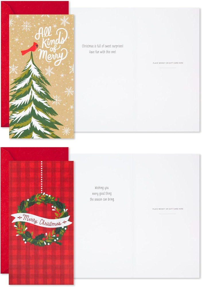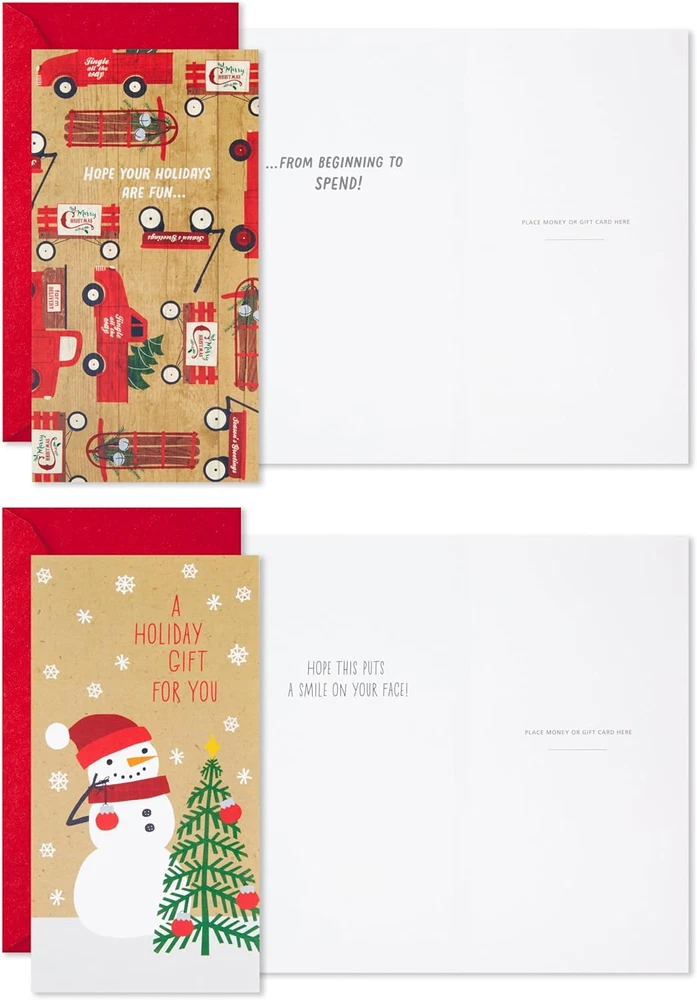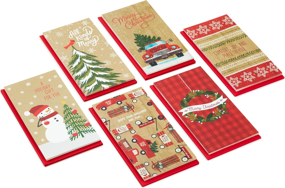 Store New Arrivals Add to Favorite View Feedback Contact Christmas Gift Card Holders or Money Holders Assortment, Rustic (36 Cards with Envelopes) Description Item model number 5CZE1033 Closure Gummed Number of Items 36 Color Rustic Holidays Money Holder Assortment Material Type Paper Manufacturer Part Number 5CZE1033 Item Weight 11.2 ounces Shape Other Pre-printed holiday Manufacturer Marketing Company, LLC (Office) Product Dimensions 8.3 x 4.5 x 0.01 inches Size 646 Wish friends or family members a happy holiday with a festive Christmas card and a gift card or cash. Holiday card pack includes 36 cards in six designs (6 of each design) featuring rustic icons like vintage red trucks, pine trees, and buffalo plaid prints. Each design includes a unique sentiment inside. Christmas money or gift card holders can accommodate any standard size gift card and are perfect for friends, family, and kids. Holiday cards measure 4.5" x 8.3" and come with coordinating envelopes. Printed on high quality paper stock, Hallmark's greeting cards are made with paper from well-managed forests. The perfect way to present a Christmas gift, these holiday cards have a special spot inside for gift cards, cash, or checks. Loved ones near and far are sure to appreciate your gift as well as your personalized sentiment inside the cards. Thoughtful gift card or money holders make celebrating the season and holiday gift giving easier than ever before. The Hallmark brand is widely recognized as the very best for greeting cards, gift wrap, and more. For more than 100 years, Hallmark has been helping its customers make everyday moments more beautiful and celebrations more joyful. ABOUT US We offer the best prices around on high quality products. Our E-store includes media such as books, movies, music and games while offering electronics, toys, sporting apparel, clothing, tools, general home, garden items and more. SHIPPING We are always working hard to ensure your package arrives as soon as possible. Please understand that some factors like weather, high postal traffic, and the performance of shipping companies are outside of our control. We offer free shipping to the lower 48 states and ship within 2 business days of payment, usually sooner. We do not accept P.O. Boxes. Please provide a physical address. RETURNS We offer a 30-Day Return Policy on items which you are not completely satisfied with. You have the option for a full-refund or an exchange of the item. No returns are available on items shipped outside of the USA. PAYMENT We accept PayPal. CONTACT US This page content is yet to come Please ad us to your favorite seller and visit again later Thank You CUSTOMER SATISFACTION We try our very best to make sure every customer is completely satisfied. If there's a problem, message us! We're happy to help.
