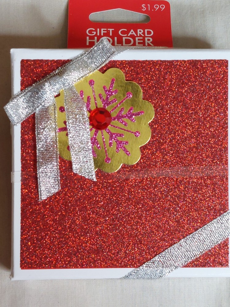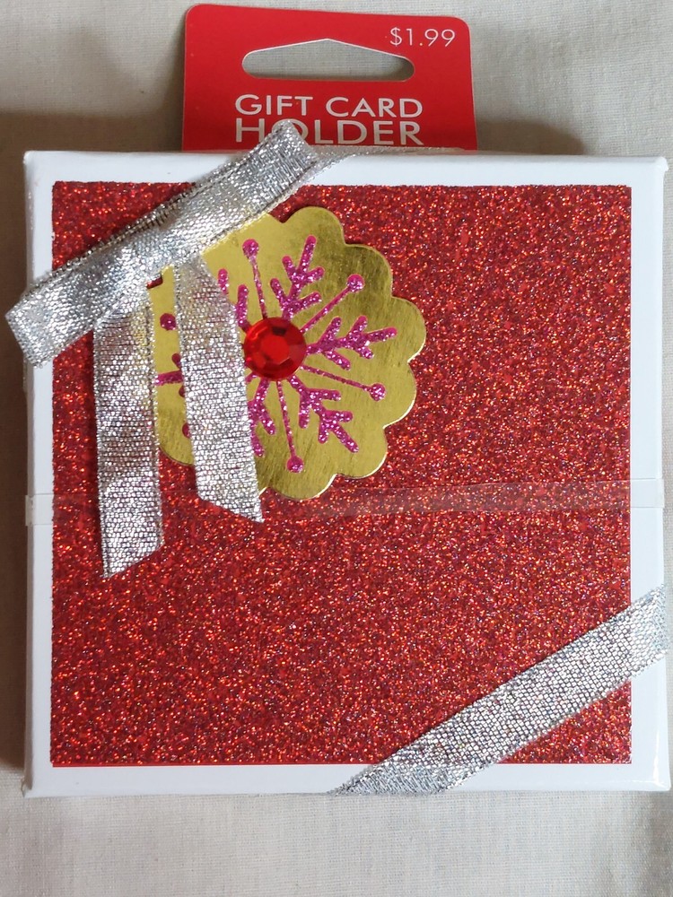 The Christmas Gift Card Money Holder is a red glitter box with a bow, perfect for giving a gift. It is a Gift Card with no specified expiration date, allowing the recipient to use it at any time. The card can be loaded with any amount of money, making it a flexible and festive present for the holiday season.