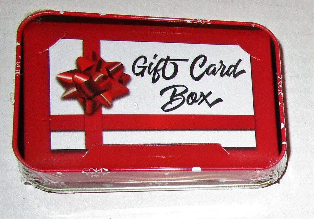 UPC:N/AOccasion:Christmasgtin13:N/ABrand:Nantucket DistributingType:Gift card TinPattern:Bling Blingin` ChristmasProduct:Gift Card TinMaterial:MetalColor:Multi-ColorCountry/Region of Manufacture:ChinaMPN:Does Not ApplyTheme:ChristmasSize:4" x 2.75" x 1"