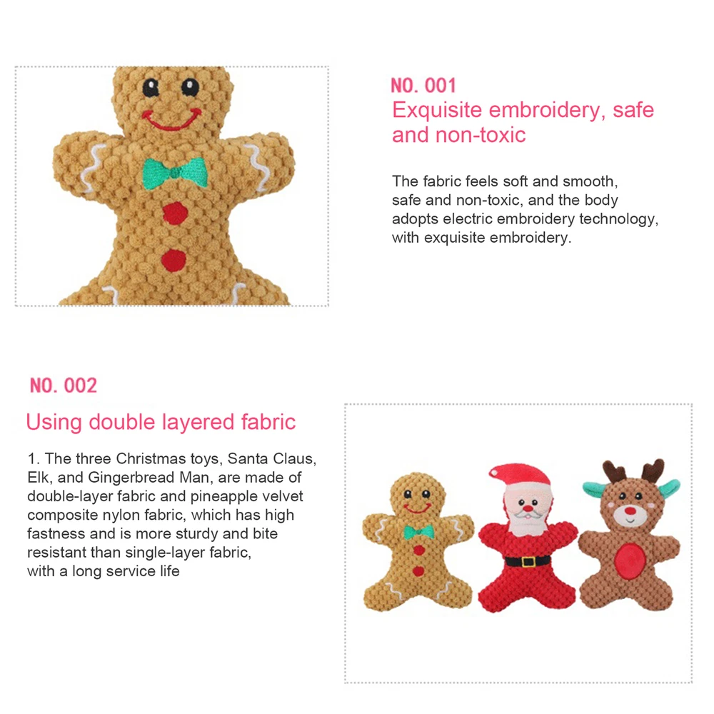 Christmas Gingerbread Man Squeaky Plush Dog Toy, Chew Guard Technology Product Description Bullet Points: Holiday Cheer: Enjoy a joyful Christmas with your pets by playing with these squeaky plush dog toys that create a festive atmosphere. These toys have a Christmas themed design. Attract Your Pet's Attention: This Christmas squeaky plush dog toy will satisfy your pets curiosity and attract their attention with its funny sounds. It is designed to make your pet happy and engaged during the festive season. Pet Teeth Care: Our Christmas squeaky plush dog toys help maintain excellent oral hygiene for your pets. With its suitability for chewing and grinding, your pet's teeth will stay clean, healthy and free from teeth dirt buildup. Durable Materials: With its soft, high-quality plush material that doesn't shed or unravel easily, this plush squeaky dog toy is perfect for keeping your pet entertained. Enhance Fun Time: The Christmas squeaky plush dog toys provide an interactive tool to keep your furry friend entertained and mentally stimulated. This enhances their engagement and strengthens the bond between you and your pet. Celebrate Christmas with your furry friend! Our Christmas Dog Squeak Toys are the perfect addition to create a festive atmosphere. These sound entertainment devices also function as chew toys for pet teeth grinding. Solid and interactive, your pet will love playing with these festive and durable toys. material: plush Packing size: 19*13*5CM List: 1*stuffed Christmas dog toys Payment 1.PayPal is a preferred Payment method. if you Do NoT have a Paypal account, please go to www.paypal.com register. 2.You can make a Credit payment via Paypal.Paypal will let you use MasterCard,Visa to pay. 3.Payment should be completed within 3 days after auction closed, or unpaid dispute will be filed for an closing auction.An unpaid case will be filled after 4 days. Delivery details 1. We ship to many countries. 2. Delivery Time: Ship from China via Speedpak to US (takes 8-12 days) Ship from China via others shipping method to other countries (takes 15-60 days) 3. If you want to choose another address, please leave us a message on ebay.Please check your shipping address carefully before checkout,it can't be changed if order completed. Seriously promise:Refund or resend will be offered if item still not arrive in 7-10 business days. Just send us an email,we will give you a satisfied solution as soon as possible. Return policy 1.All item comes with Basic 3 Months Sellers Warranty, if item defective in 3 months,We will offer replacement without extra charger (including shipping fee) After we receive the defective item. If item Defective after 3 Month, Buyers can still send it back, We will contact suppliers or Manufactory for Warranty. Buyers Might Need pay the Shipping fee For resend the replaced item. 2.If item DOA(Dead of Arrival), Buyers can return it in 30 Days, we will replace it with new item after we receive DOA item. Please Contact us Before you sent the item back. 3.All item can be returned for exchange only. The buyer has responsibility for all return shipping including DOA or defective return. About Feedback When you receive the item and satisfied with the product, please leave positive feedback and 5 scores DSR. We will leave a 5 Scores DSR feedback for you. If, for any reason you are not satisfied with your purchase, please contact via Ebay Message and we will do our best to resolve it. Please don't leave neutral or negative feedback without any communition with .
