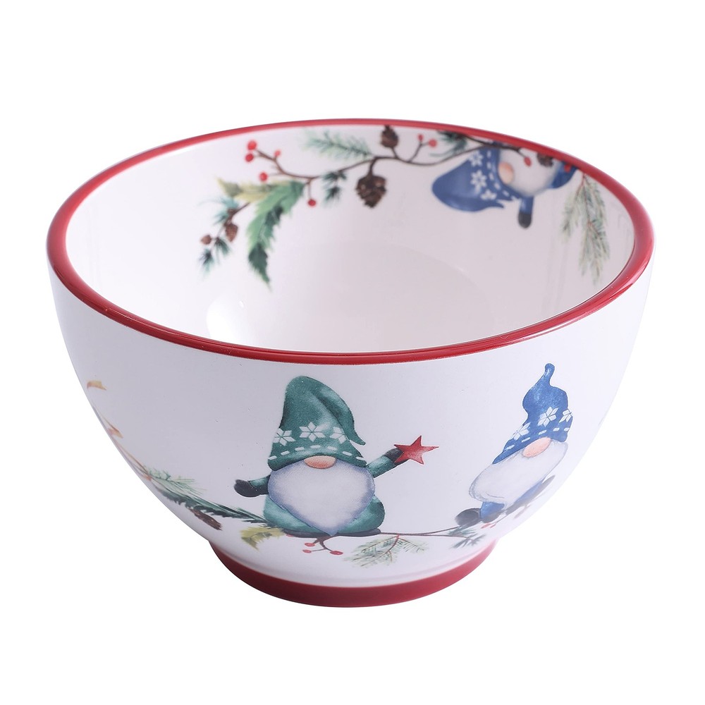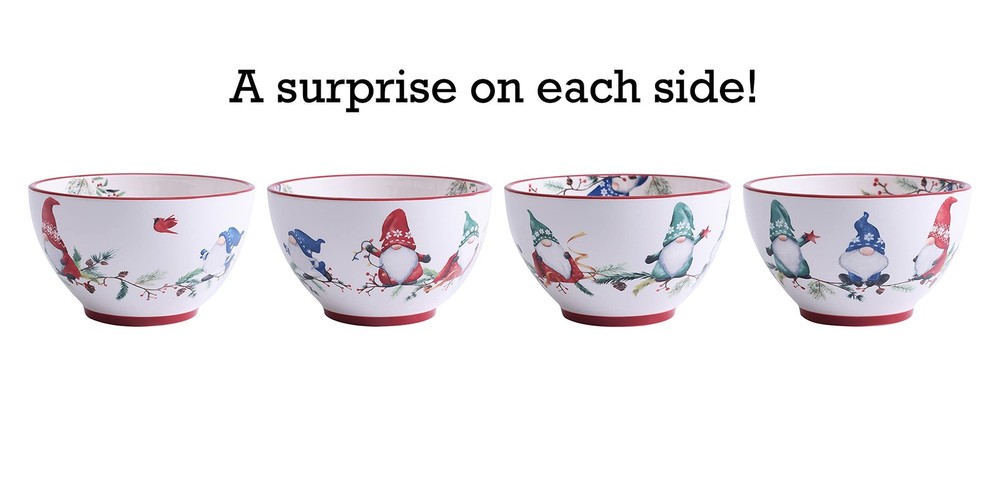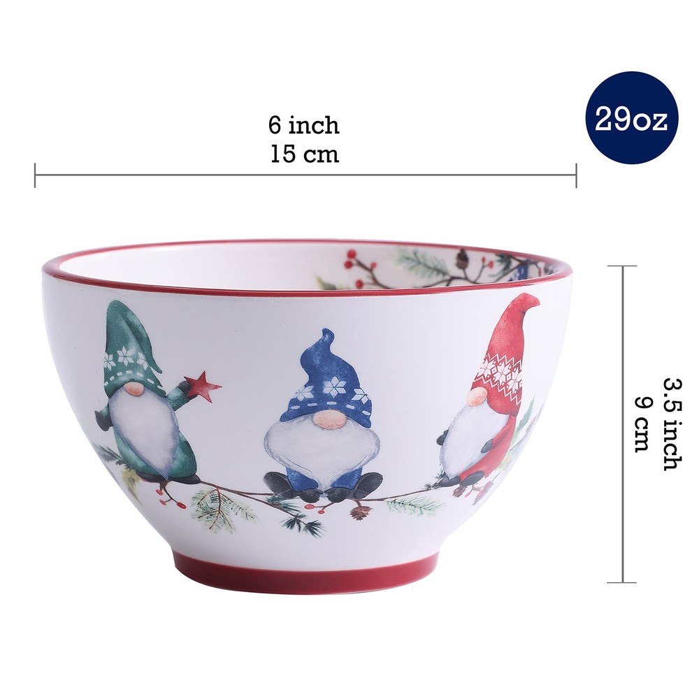 Christmas Gnomes Cereal Bowls Set of 4, 29 oz Deep Ceramic Soup Bowls for Cer...