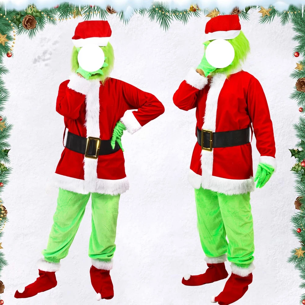 Description Big Monster Costume Boys 7PCS Christmas Monster Outfits. Christmas Monster Costume for Includes: 1* Green Giant Monster full head +1*Red fur edging hat+1* Top+1* Green gloves+1* Green pants+1*Buckle belt+1*Red velvet socks, including everything your need Christmas Cosplay Costume Material: Christmas Green Giant Monster costume for is made of polyester faux fur and soft velour, friendly and comfortable for your , green is latex and designed with eye holes, breathable and easy to put on Easy To Put On: Christmas monster costume for top with velcro design easy to put on and take off, green pants with elastic waistband fit more waist sizes, buckle belt make the whole outfit stand out Size Information: Christmas Costume for and boys has 4 sizes, Small, Medium, Large, X-Large, please refer to our size chart to find the best size for your The Christmas Best Gift: Classic Christmas Green Giant Monster costume makes your become the focus on Christmas, Christmas cosplay costume is perfect for a Christmas party, birthday party, stage, fancy dress, or more