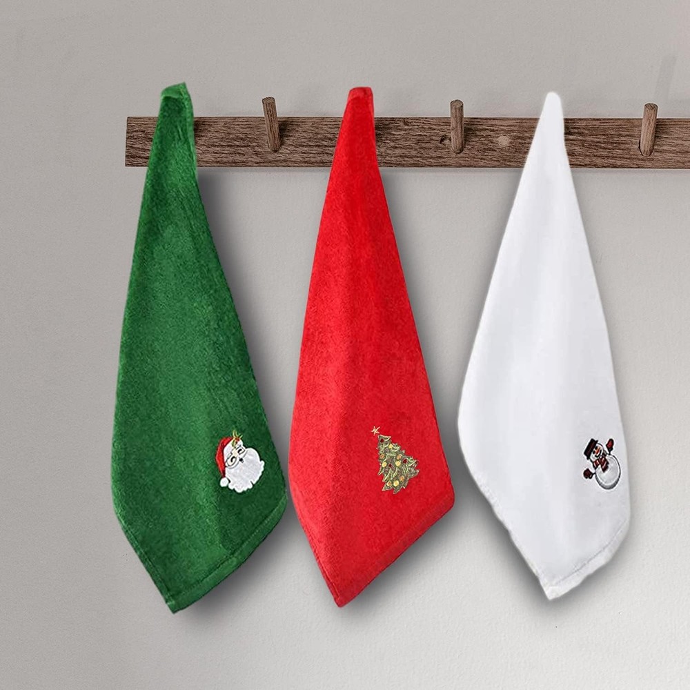 Christmas Hand Towels for Bathroom 16 x 25 inch, 3 Large(16*25in), Set of 3 LuxeFusion Product Description Features A HOLIDAY DISH TOWELS SET FOR CHRISTMAS:Set of 3 dish towels measures 16 x 25". Santa Claus, snowman, and the Christmas tree embroidery design, make the towels set perfect decoration for your holiday kitchen. LONG-LASTING MATERIAL: Made with 100% combed cotton with excellent water absorption and soft touch. Combed cotton is a specialty process that produces a more plush and velvety finish. Do not bleach them or run them through a hot dryer WIDE USAGE: perfect as a hand towel, dish towel, fingertip towel, kitchen towel, cleaning cloth, tea towel and more. EXQUISITE EMBROIDERY DESIGN: Santa Claus, snowman, and Christmas tree embroidery, make the towels set perfect decoration for your holiday kitchen GREAT HOLIDAY GIFT: Perfect gift for Christmas, party, holidays, birthdays, housewarming and more Product Details Color: Set of 3 Brand: ULERSP Towel form type: Hand Towel Material: Cotton Product Dimensions: 25"L x 16"W Free Shipping All orders ship free and fast to your doorstep. Easy Returns Satisfaction guaranteed. 30-day returns, no questions asked. 24/7 Support Contact us anytime; we’re here to help, day or night. Brought to you by LuxeFusion – Quality you can trust.