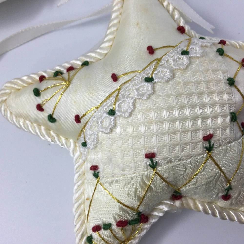 Christmas Tree Hanging Ornaments Fabric Angel and Star. Very good condition, no damage. Angel is 6" W and Star is 5". InvN/GWB/1