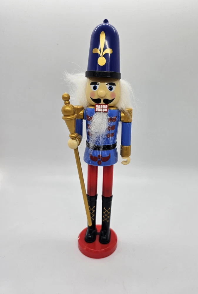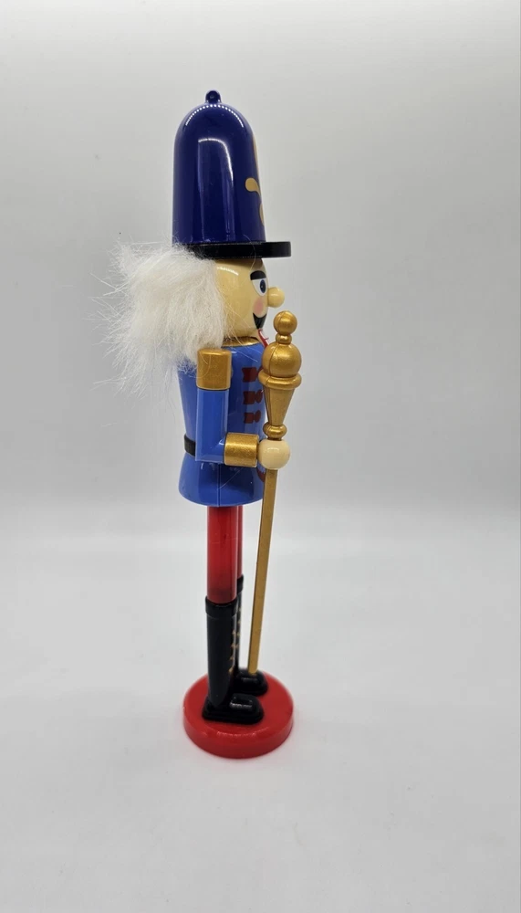 Christmas Holiday Decor 9.5" Nutcracker Soldier Blue Jacket Red Base Greenbrier