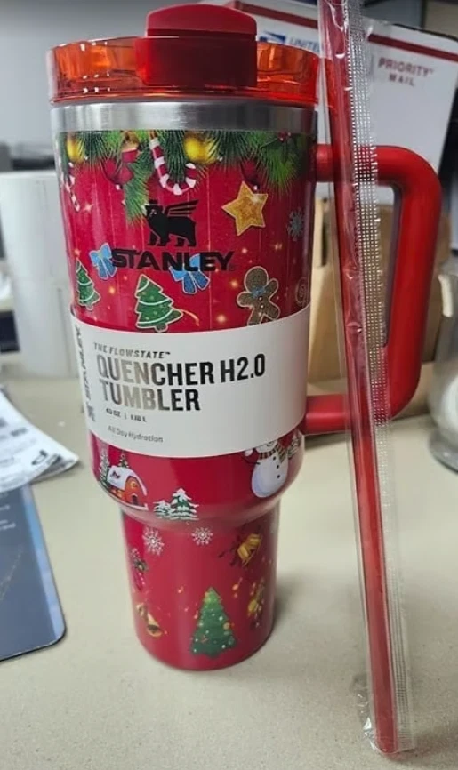 Enjoy your favorite hot beverage during the holiday season with this festive Stanley tumbler. Featuring a colorful design and holiday theme, this tumbler is perfect for adding a touch of cheer to your kitchen or dining room. Made by the trusted brand Stanley, this tumbler is sure to keep your drink warm and refreshing for hours. Ideal for Christmas occasions, this tumbler makes a great gift or addition to your own collection.