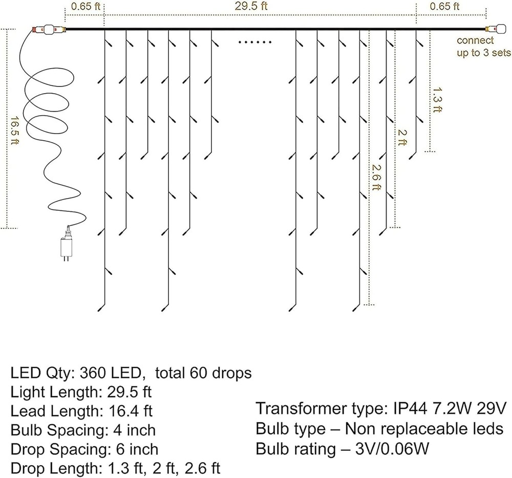 Christmas Icicle Lights, 8 Modes Curtain Fairy Lights with Drops, Connectable Xmas String Lights for Outside Holiday Wedding Party Decorations Multi-Colored, 360 LED Christmas Icicle Lights, 8 Modes Curtain Fairy Lights with Drops, Connectable Xmas String Lights for Outside Holiday Wedding Party Decorations
