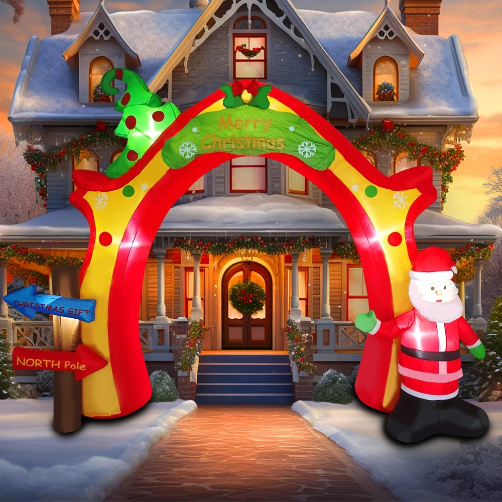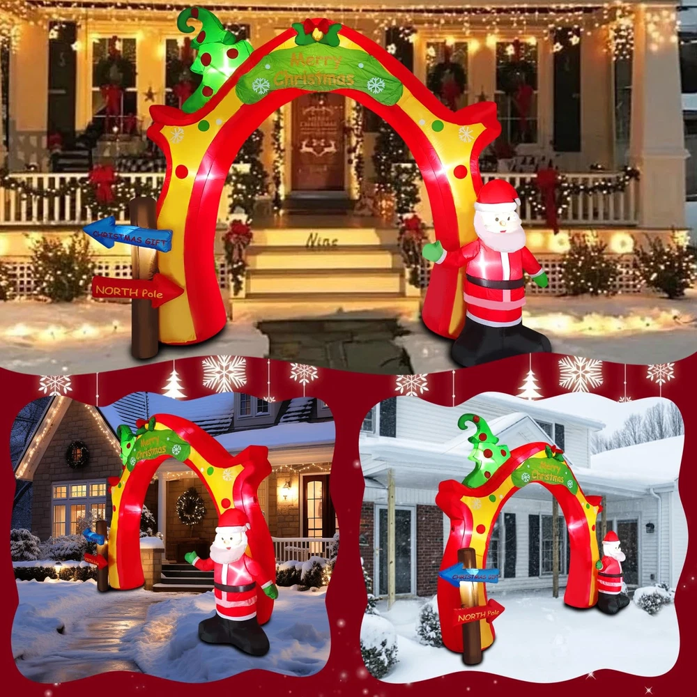 Filled with sweet, warm expectations, the streets are lined with festive costumes, silly snowmen, sleighs full of gifts, and Christmas trees hung with ornaments, colored balls, bells, ribbons, and stars streaming under the lights with a dreamy sheen. The magical moment of Christmas Eve has come. amazing Giant Inflatable Christmas Arch Decoration helps you light up the dreamy Christmas night and create a magical Christmas for you! It brings the joy and blessings of Christmas to your home, patio or store front in the most dazzling and eye-catching way. ▶Spectacular Festival Landmark: large inflatable design creates an imposing archway that instantly enhances the festive atmosphere and becomes the focus of attention in the neighborhood. ▶Classic Christmas elements: the arches are carefully decorated with classic festive motifs such as a silly Santa Claus and a green Christmas tree full of presents, all in bright and full colors. ▶Built-in LED lighting: Night is its home ground! Built-in energy-saving LED light, the pattern is shining under the light, creating a warm, romantic and dreamy Christmas night scene, making your home full of holiday magic light! ▶Durable and portable easy to store: Made of thickened polyester, windproof and waterproof, sturdy and durable. It can be easily deflated and folded for storage at the end of the festival without taking up space. ▶Widely used scenes: home yard, front lawn, shopping mall entrance, store window, community square, Christmas party scene... Anywhere you need to add Christmas atmosphere, it is the perfect choice! Make this Christmas special! This giant inflatable Christmas arch is more than just a decoration, it is a magic door to create joyful memories for family, friends and all who pass by. Get your hands on it now and welcome Santa Claus in the brightest and most colorful way to start your own dreamy Christmas season! 【Light Up The Festive Atmosphere】Christmas inflatable decorations bring you great surprise, built-in high brightness LED lights, low power consumption, energy saving, long time lighting is not a burden, in the night automatically light up, outlining the arches, Santa Claus, Christmas trees, and other classic elements, to become the most eye-catching outdoor focal point, so that your home or store instantly filled with a rich Christmas magic 【Large Inflatable Modeling & Christmas Elements】This Christmas archway outdoor decoration adopts large inflatable design, which makes Santa Claus, Christmas tree and other elements three-dimensional full, vivid and lively, full of childish fun and sense of joy. The large volume brings a strong sense of visual presence, making the holiday decoration effect more shocking and eye-catching 【Quick Build & Easy to Use】It only takes a few minutes to complete the whole Christmas Inflatable blow-up yard decoration on one shoulder, no need for complicated assembly! Simply find a flat ground, spread out the arch, connect the built-in blower power supply, it can be automatically inflated and shaped in a very short time, say goodbye to the tedious holiday decoration setup troubles, and enjoy the holiday time easily. 【Reliable Material Shines Throughout the Christmas Season】Made of thickened and abrasion-resistant polyester material, it has excellent waterproof, windproof and UV protection performance. Sturdy anchors will be fixed on the ground and stand firmly in rain and snow, the built-in LED lights are waterproof design and 12V voltage, which is safer and ensures continuous and stable illumination throughout the Christmas season, fearless of the challenges of bad weather 【Widely Applicable & Cozy Guardian Christmas Eve】This inflatable arch decoration for Xmas is perfect for parties, lawns, schools, shopping malls and so on, indoor and outdoor can be used, build an unforgettable and delightful scene for you, perfect for Christmas parties, let the cozy lights safely light up every Christmas Eve