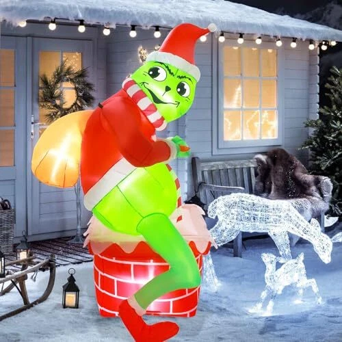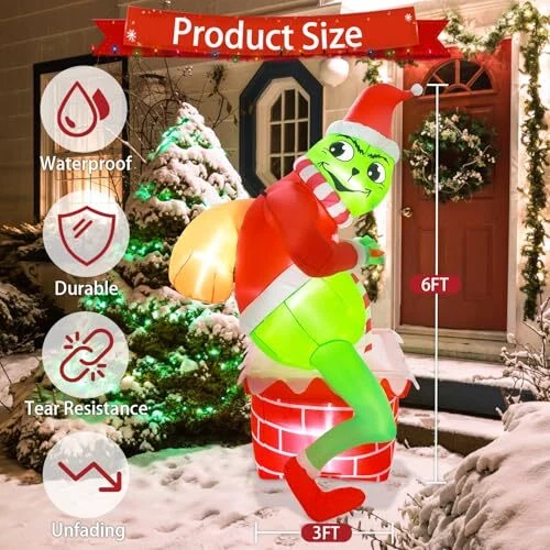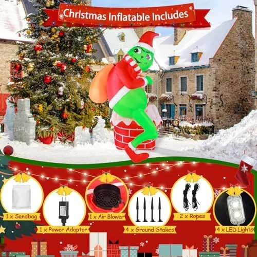 30 Days Return Policy Fast Delivery Trusted seller Christmas Inflatable Outdoor Decoration 6FT Santa Green Giant Mouth Monster Inflatable Yard Blow Up for Xmas Blowups Outside Holiday Seasons Product Description Unique Design: Make your holiday decorations unforgettable with the 6ft Santa Green Giant Mouth Monster inflatable. Features a vibrant green monster with a friendly mouth, wearing a classic Santa hat and carrying a huge bag on his shoulder. The monster is humorously posed climbing into a chimney, blending Christmas cheer with a playful twist. Its expressive eyes and exaggerated features make it a perfect addition to any festive display, capturing the fun and whimsy of the holiday Bright Built-in Lights: Our Santa Green Giant Mouth Monster inflatable featuring bright built-in lights that make this charming monster come to life after dark. The internal lighting not only highlights the monster's vivid colors and whimsical details but also ensures it stands out beautifully in your yard, even from a distance.These lights create a captivating and festive atmosp, making this inflatable a must have for any holiday decor enthusiast looking to impress visitors and passersby Durable and Waterproof: Crafted from premium materials, built to withstand the elements, ensuring long-lasting use throughout the holiday season. Not only waterproof but also resistant to fading and tearing, making it ideal for displays in various weather conditions. Whether it's rain, snow, or sunshine, this inflatable maintains its vibrant colors and festive charm. This inflatable monster is designed for both durability and aesthetic appeal, making it a standout piece in any holiday setup Perfect Size & Easy to Set Up and Store: This inflatable is as practical as it is entertaining. With easy blowups setup and takedown, it's ideal for quick holiday decorating. When the season ends, it deflates and stores compactly, making it a convenient addition to your collection of yard decorations, whether it's for Christmas, Halloween, or any festive occasion Versatile Outdoor Decoration for All Seasons: Whether it's a Christmas vacation, a spooky Halloween, or any holiday in between, this giant Santa monster fits right in. Its funny and scary design makes it a versatile outdoor inflatable that brings joy and a touch of fright to your yard decorations Shipping Returns Payment Shipping Shipping is FREE to all addresses other than APO/PO boxes in the lower 48 states. All our stock ships from US-based warehouses. Shipped via USPS or UPS (depending on location and package weight) Unless stated otherwise, all orders will ship within 24-72 hours of your payment being processed. Check our feedback to see the great reviews of FAST shipping we offer. Returns As our valued customer, we will do our best to make sure the product you receive arrives to you on time and as expected. If you are not satisfied with your purchase, please contact us within 30 days of receiving your order to process a return. Payment We currently accept payment via eBay managed payments only. Once payment is cleared, we will dispatch your shipment within 1-3 business days. Please refer to the "Shipping" tab for more information regarding shipping speed to your destination.