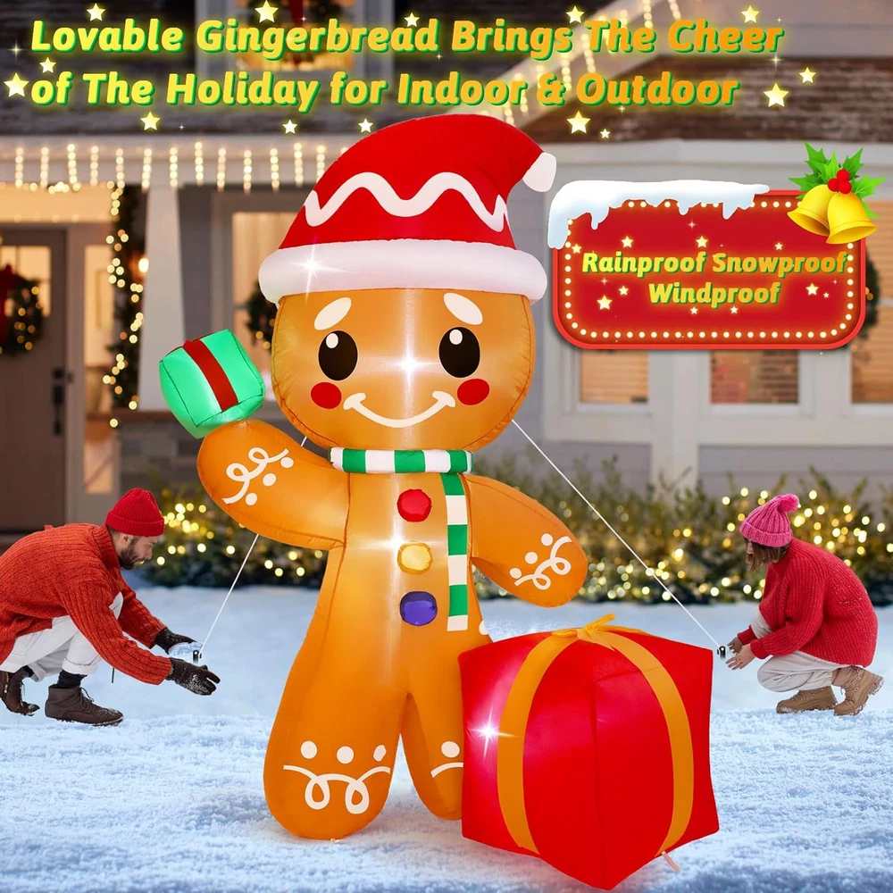 Christmas Inflatable Outdoor Decoration, Long-Lasting 6FT Gingerbread Inflatable