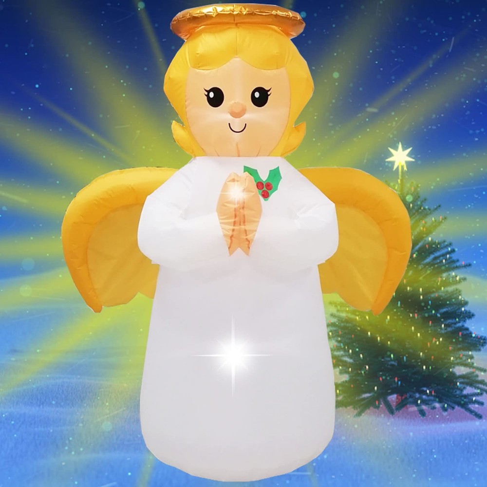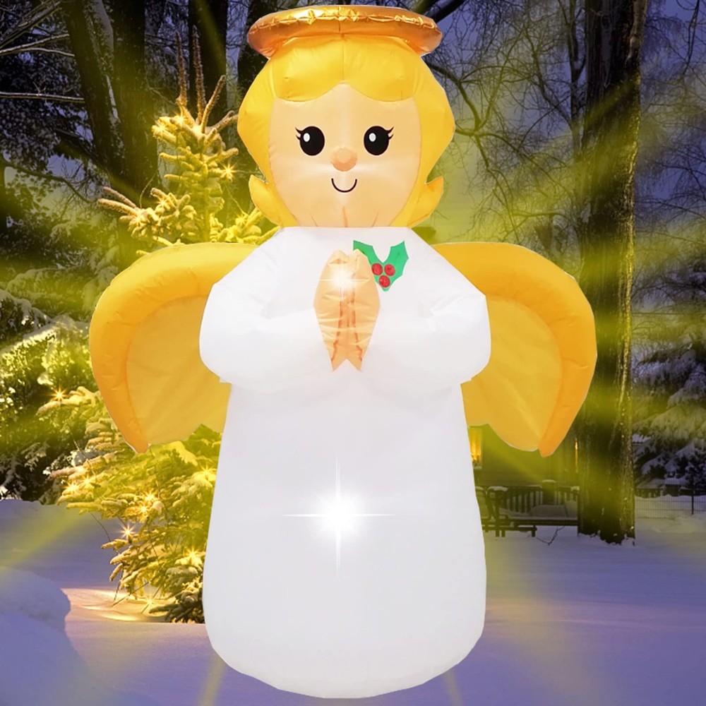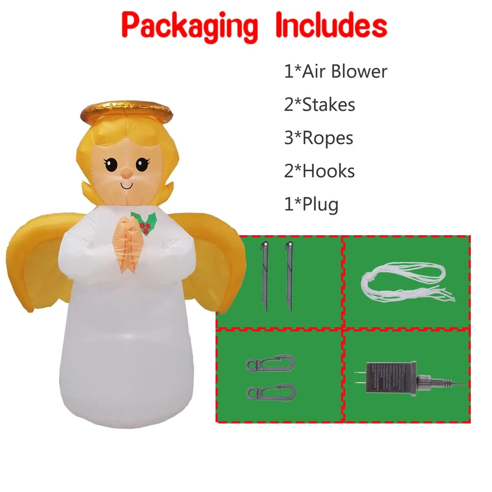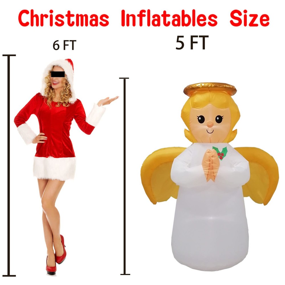 inflatable outdoor yard decoration đ§ăChristmas Inflatable Angelă comes with LED lights inside. 5 ft tall would be an adorable eye-catching addition for your . đ§ăBuild-in Led LightsăEquipped with LED lights to light up whole angel and your winter night. đ§ăEasy to InstallăPlug and play.You just plug it into standard outlet, it will be standing up in few minutes. Ropes and stakes to ensure its stability, no fall down. đ§ăEye-catching Christmas InflatableăThe adorable angel inflatable will be an addition to your garden. To create holiday atmosphere and make your family and neighbors a big hit. đ§ăChristmas Decoration OutdoorăThis Christmas decoration is Wonderful for your yard, garden, lawn, Xmas, holiday night and so on. The cute design will make your happy and joy.