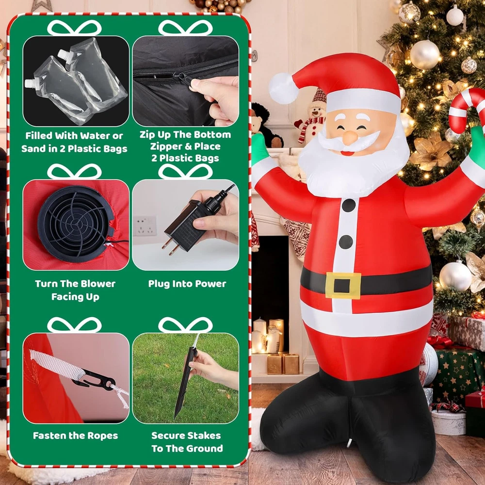 Store New Arrivals Add to Favorite View Feedback Contact Fast deliveries to the customer's home Quality customer service John Make the customers happy! Christmas Inflatables Outdoor Decorations, 6 FT Santa Claus Christmas Decor for Front Back Yard Garden Lawn, Blow up Inflables De Navidad Built-In LED Light with Candy Cane Description Perfect Christmas Inflatables Outdoor Decorations-6 FT Santa Claus Inflatable christmas decorations outdoor comes with built-in bright LED lights and candy cane. Bright enough to light up the cheerful atmosphere, not only lights up your yard but also creates a magical holiday atmosphere to your Christmas Day. Whether indoors or outdoors, Xmas Christmas ornaments decor will make your Christmas celebration even more eye-catching.Suitable for Indoor,Outdoor Yards, Gardens, Patios, Homes, Lawns Christmas Ornaments Quick Inflation with LED Light- Built-in LED lights are visible from a distance, making Christmas decor standout in the night. Christmas Inflatables can illuminate your yard, attracting neighbors and guests, and serves as the highlight of your Christmas Blow Up Yard Decorations. Comes with a powerful blower can inflate in one minute and a UL-certified adapter. Christmas outdoor inflatables are deflate quickly and fold to store in equipped box after the Christmas day holidays Stable and Durable Outdoor Christmas Decorations -Made of high-strength, waterproof polyester, blow up Christmas decorations outdoor is durable and resistant to tearing, suitable for all weather conditions.No need to worry about inflatable Santa Claus decoration blowing away on a rainy,snowny,windy day. As it comes with 2 internal sandbags, 2 ropes, and 4 stakes to make it stand without support. Inflables de navidad is the perfect choice for Christmas blow ups,adding endless fun to holiday decor Easy to Use and Store Christmas Inflatable Santa Claus - inflatable Christmas decorations sets up in just one minute after being plugged in. It's safe and easy to use, making it simple for children to get involved in the decorating fun. Christmas inflatable is the ideal choice for busy families who want to quickly set up their holiday decor and bring festive cheer with minimal effort.Kids like this Santa inflatable Christmas yard decorations the most, taking photos to record this wonderful time Versatile Christmas Decor Ornament and Christmas Gifts-An interesting Christmas Indoor & Outdoor Decoration for a Christmas Party, Christmas Eve, or Christmas Night in the yard, garden, porch,lawn, or home, New Year celebrations. Light up in the evening to bring kids,neighbors, and guests into a fantastic Christmas world. Make your holidays unforgettable with Christmas inflatable santa claus built-in LED Light with candy cane. Christmas gifts for friends,family,neighbor,kid,husband,wife,daughter Product Description 6 FT Blow Up Santa Claus Christmas Decorations Welcome Guests to Holiday Parties The video showcases the product in use. The video guides you through product setup. The video compares multiple products. The video shows the product being unpacked. Christmas Inflatables Santa Claus Outdoor Decorations Built-in LED Light Unique Indoor & Outdoor Decoration Making It a Standout In The Night Blow Up Santa Claus Light Up Yard Garden Lawn and Celebrate Christmas Day Durable and Weather-Resistant Outdoor Christmas Decorations Christmas Inflatables Outdoor Decorations Quick and Easy Installation Christmas Gifts for Your Family, Children, Lovers, Friends, and Colleagues Christmas gifts for friends,family,neighbor,kid,husband,wife,daughter Item Dimensions 5 x 2 x 1.99 inches Color Red,White,Black,Green Light Color Warm White Material Type Polyester Christmas Decor Theme Christmas, New Year,Decoration Occasion function(f) {var _np=(window.P._namespace("DetailPageProductOverviewTemplatesJava"));if(_np.guardFatal){_np.guardFatal(f)(_np);}else{f(_np);}}(function(P) { P.when('A').execute(function(A){ A.on('a:truncate:po-attribute-truncate-4:updated', function(data) { var isTruncated = !data.truncateInstance.getIfTextFits(); var seeMoreElement = document.getElementById('po-attribute-see-more-id-4'); if(seeMoreElement) { seeMoreElement.style.display = isTruncated ? '' : 'none'; } }) }); })); blow up christmas decorations outdoor, New Year inflatable christmas decorations outdoor, christmas inflatables, Indoor & Outdoor Christmas Decoration, Christmas inflatable outdoor decoration See more Additional Features Easy Setup, Portable, Durable, Foldable, Easy Deflate Subject Character Santa Claus,Xmas Cartoon Character Santa Claus,Xmas ABOUT US We offer the best prices around on high quality products. Our E-store includes media such as books, movies, music and games while offering electronics, toys, sporting apparel, clothing, tools, general home, garden items and more. SHIPPING We are always working hard to ensure your package arrives as soon as possible. Please understand that some factors like weather, high postal traffic, and the performance of shipping companies are outside of our control. We offer free shipping to the lower 48 states and ship within 2 business days of payment, usually sooner. We do not accept P.O. Boxes. Please provide a physical address. For shipping outside of the continental USA, we only use eBay's Global Shipping Program. The item is shipped to KY and then sent to the rest of the world. International customers are responsible for all duties and taxes. Continue to 'check out' to calculate costs for shipping the item to your country. Messages regarding eBay's Global Shipping Program MUST be directed at eBay EXCLUSIVELY. RETURNS We offer a 30-Day Return Policy on items in which you are not completely satisfied with. You have the option of a full-refund or an exchange of the item. No returns are available on items shipped outside of the USA PAYMENT We accept PayPal. CONTACT US This page content is yet to come Please ad us to your favorite seller and visit again later Thank You CUSTOMER SATI