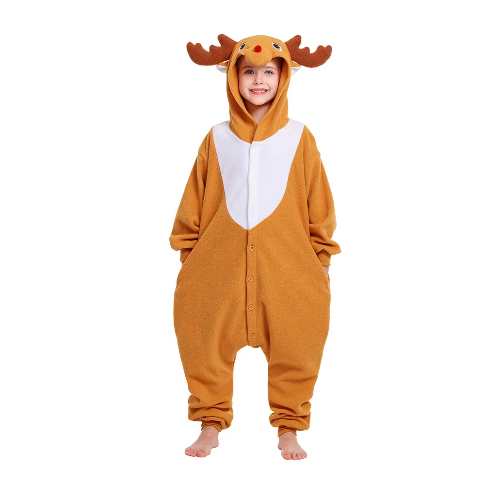 This Christmas, let's make our homes a haven of warmth, laughter and unforgettable memories - all in these festive Reindeer one-piece pajamas. Details The hat is designed according to the real appearance of the reindeer.The eyes ,noses ,antler add a touch of whimsy and fun. Front button design in accordance with the adult reindeer pyjamas. At the same time easy to button,strict thermal insulation. On the back of adult reindeer costumes,there is a lovely reindeer tail. The pockets are designed to keep your hands free and warm at the same time. Our Reindeer Onesie is crafted from soft, skin-friendly fabric, meticulously tailored to encapsulate every detail, as if wrapping you in the warmth and serenity of the northern forest. Occasions On chilly winter evenings,our Reindeer matching onesie for couples provide extra warmth and coziness.Whether watching a movie, reading a book,or simply relaxing in bed, the material keeps one comfortably warm. On lazy weekend mornings or afternoons, the Reindeer pyjamas are perfect for lounging around the house, doing nothing in particular, and simply enjoying the comfort of being cozy and warm. On holidays like Christmas or Halloween, our Reindeer one-piece cosplay sleepwears add atmosphere to a simple holiday.You can wear it to take fun photos with your family and make many fantastic memories. When you just need to run a quick errand, like checking the mailbox or grabbing a few items from the store, the pajamas can serve as a casual and comfortable outfit. Our adult Reindeer suits are also the best gifts for lovers, family and friends during Halloween and other holidays.
