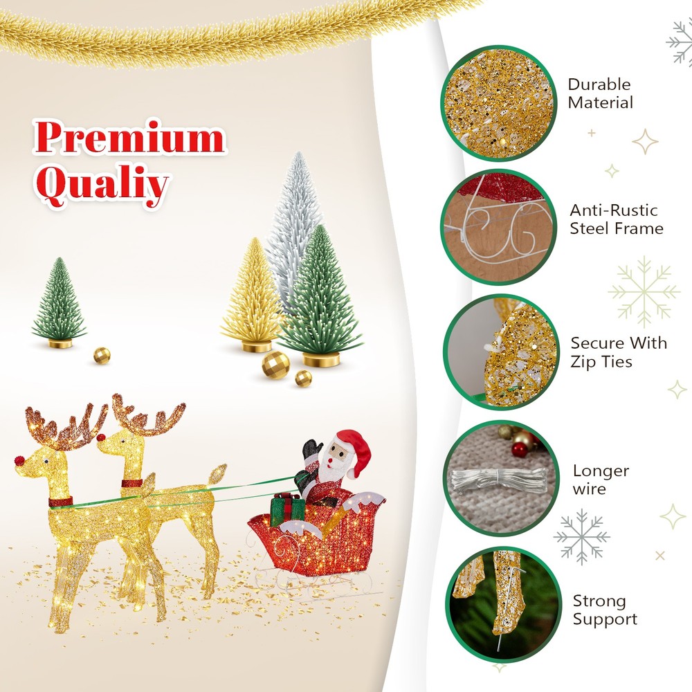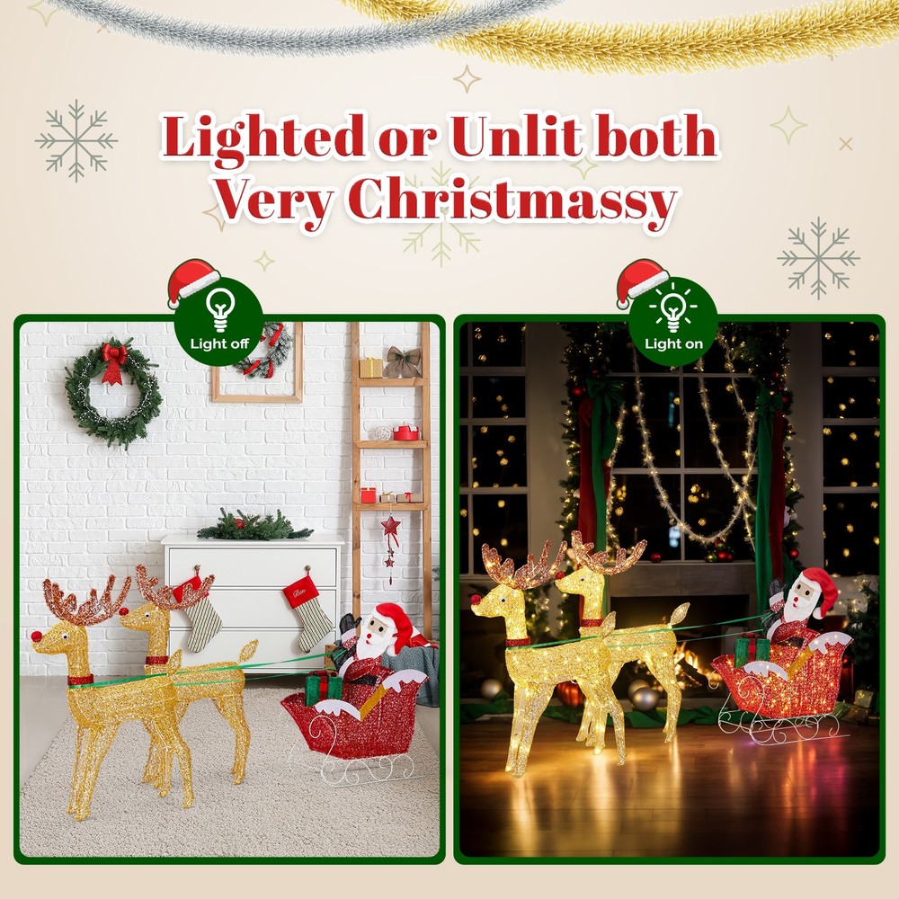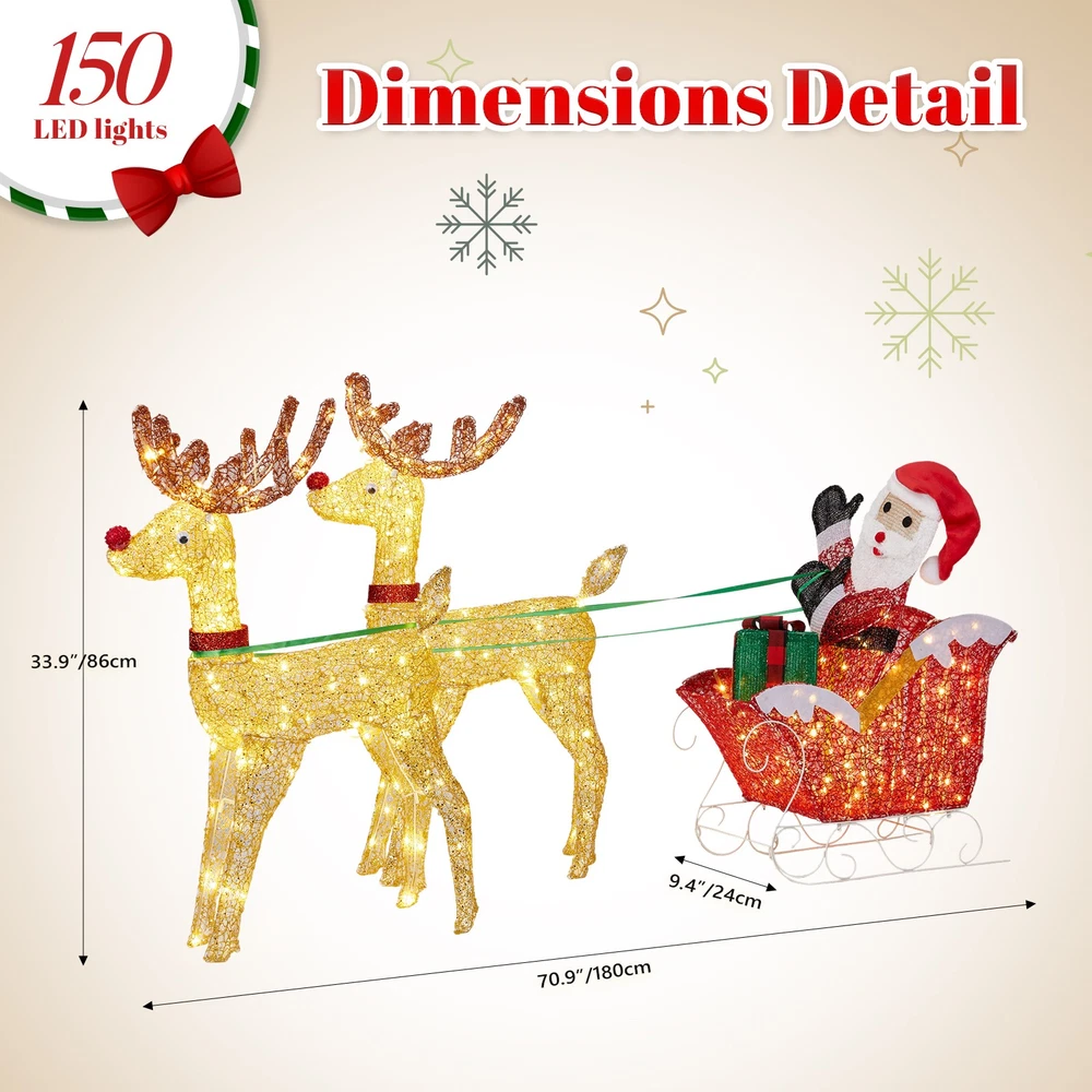 Outdoor 71in Christmas Lighted Deer Pulling Old Man Splicing Lawn Decoration