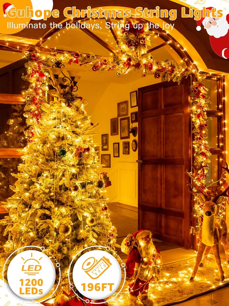Christmas Lights 1200LED 196FT, Waterproof Outdoor String Lights with Remote and