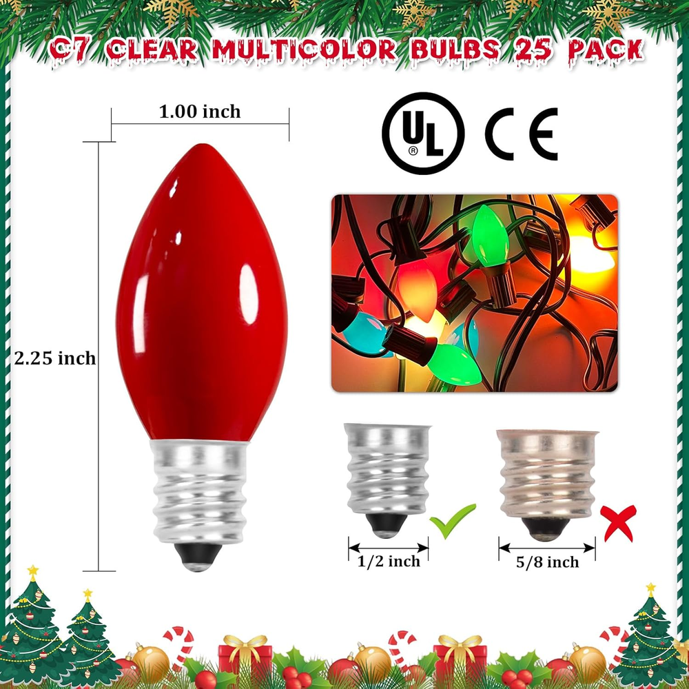 Colorful 25 Pack C9 Christmas Bulbs Replacement - Multicolor Incandescent Bulbs,