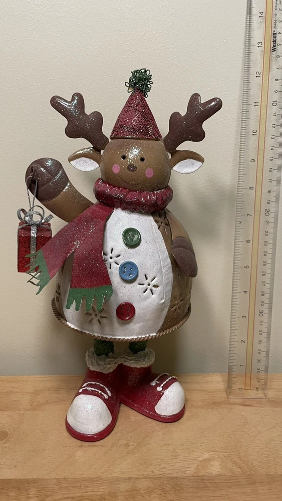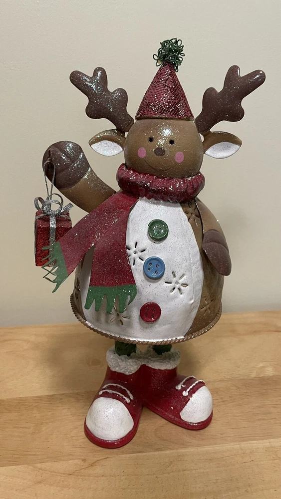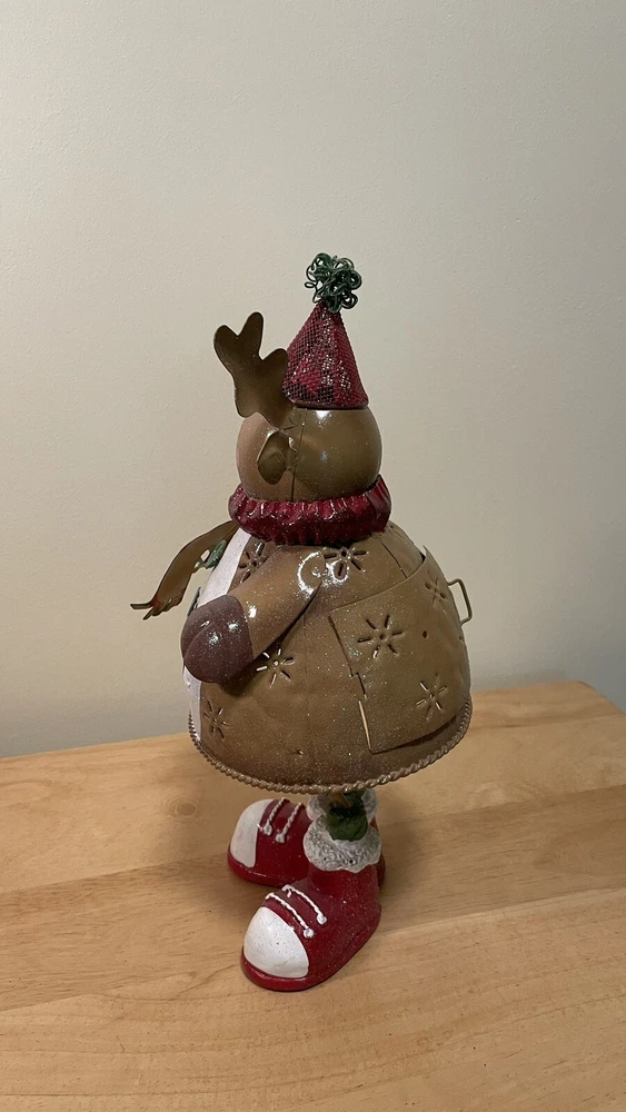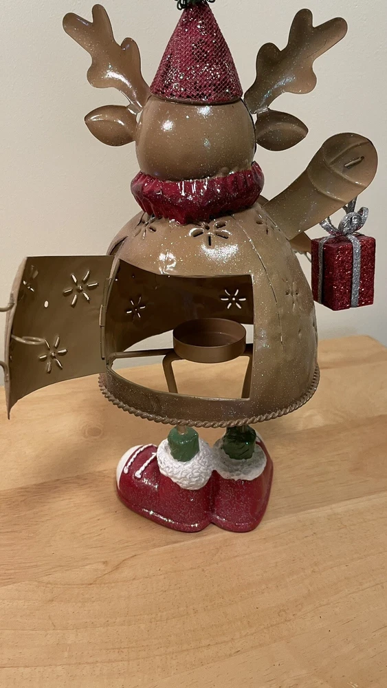 Infuse your home with holiday magic with this exquisite Christmas Metal Reindeer Votive Candle Holder. Perfect for creating a cozy and warm ambiance during your festive celebrations, this beautifully crafted piece is made from light weight metal and painted with intricate details. Featuring a charming reindeer design in rich brown, festive red, and vibrant green, it's a stunning addition to any Christmas decor. Whether you're hosting a holiday dinner party or enjoying a quiet night in, this votive candle holder will add a touch of elegance and warmth to your space. Make your home feel inviting and festive with this delightful holiday decor piece.