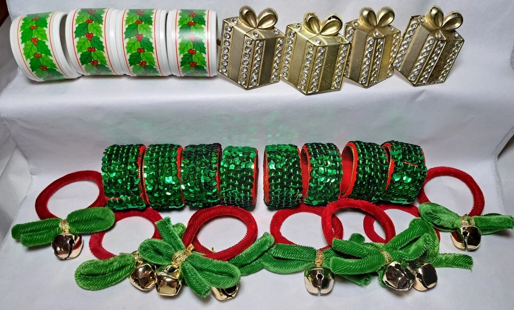 Gifts Sequins Bells Holly Leafs Christmas Napkin Ring Holders Lot Of 24pc I consider this to be in good preowned condition Some scuffs are present Please view all photos zooming in on them as they are part of the description for you to judge condition.