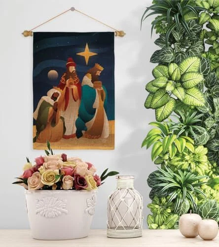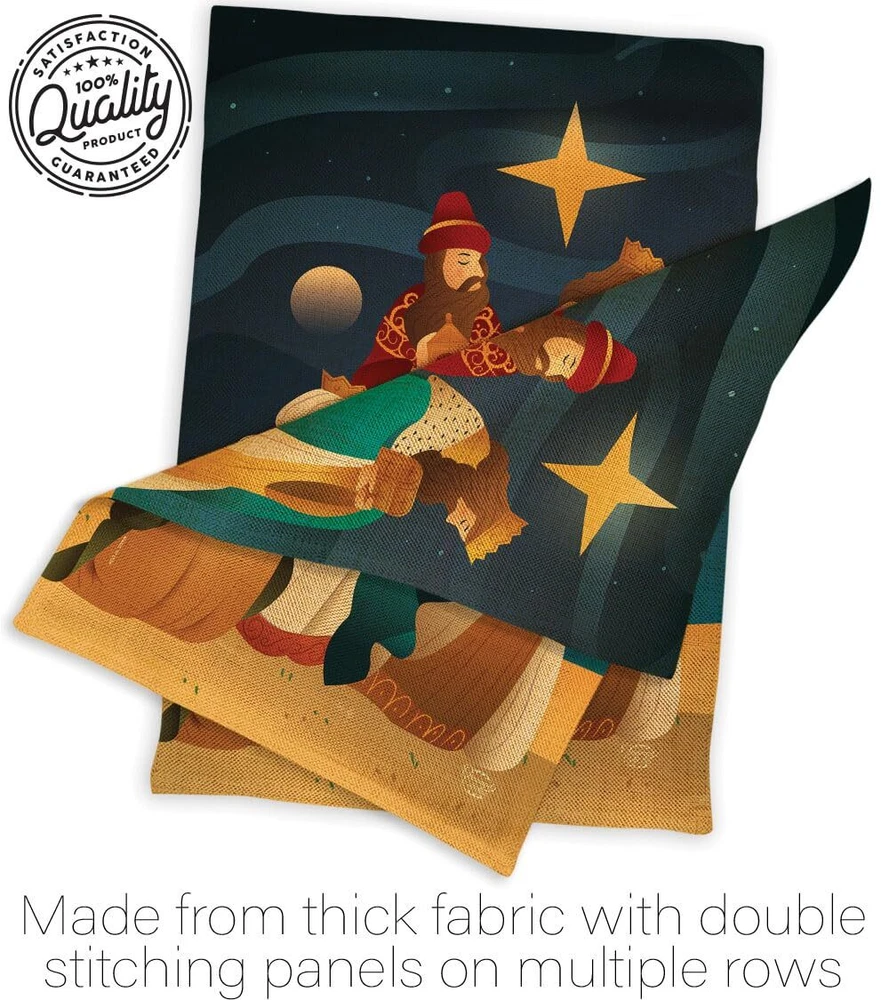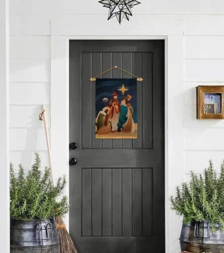 Christmas Nativity Wood Dowel Set Wooden Rod Home Decor Burlap Banner Flag Po...