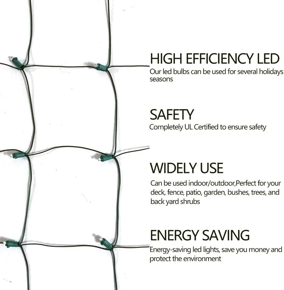 Store New Arrivals Add to Favorite View Feedback Contact Fast deliveries to the customer's home Quality customer service John Make the customers happy! Christmas Net Lights Outdoor Christmas Decorations Lights 5Ftx5Ft 100LED Green Wire, Connectable Bush Mesh Net Lights String for Christmas,St Patricks Party,Shrub,Yard,Tree (Green) Description 【Ideal Outdoor St Patricks Day Lights】Our 5ftx5ft 100led Christmas net lights string has a length of 9.84ft in front lead and 1.64ft in rear lead, perfect outdoor indoor decorations for Christmas, Thanksgiving, Easter, Halloween, party, yard, balcony, garden, pergola, gazebo, especially for trees and bushes. The green wire grid can perfectly blend with green bushes and trees, making your yard/garden look more natural during the day. 【Totally UL Certified St Patricks Day Lights】This outdoor christmas net lights Strictly tested and meets the US requirements of string lights UL safety standards.The whole christmas lights string and every part (string wire, led bulbs, output plug and all raw material) are UL certified.It has approved for indoor and outdoor christmas decorations.The christmas lights string is IP44 waterproof and can be used indoor outdoor(CAUTION:The plug is not waterproof, please keep the plug away from water). 【Durable and Sturdy Mesh Net Lights】 Our mesh net lights use the high quality and durable green wires so they are difficult to be break off. The strong construction makes it tough and sturdy, not easy to break apart and overheat after long hours of usage. They are strong enough to provide years of high quality lighting. 【Connectable St Patricks Day Net Lights】 This outdoor christmas lights string has both male/female plug,allowing you to connect max 12 sets together.You can connect lights string on different shrubs or splice them into a larger net without adding power sockets.You can connect different light strings at distance within 11.48ft,very convenient to use. 【Waterproof Outdoor St Patricks Day Decorations lights】The christmas lights string is IP44 waterproof and can be used indoor outdoor(CAUTION:The plug is not waterproof, please keep the plug away from water). 【Independent Fuse Mesh Lights】Each bulb of this bushes lights is individual, so if one or several bulbs are damaged or burnt out, the other bulbs will work normally,the entire strands of net christmas lights will stay on normally,continuing to provide you with holiday colors. We also provide 2 spare bulbs and 1 spare fuse for repair (basically no need to use). 【Widely Used Bushes and Tree Lights】The mesh and tree lights is very easy to use, unroll the net string lights then mount it at the place where you want to decorate ,suitable for terrace, indoor, outdoor, yard, garden, cafe, wedding, birthday, Christmas, Thanksgiving, Halloween, Valentine's Day, Christmas tree,etc. 【Satisfaction Guarantee】After the Christmas net lights are manufactured,we tested each function and color temperature before packaging,it will help you create a perfect holiday atmosphere.If you have any questions, please feel free to contact our after sale service team at any time, we will help you solve the problems within 24 hours. Product Description HISHINY High Brightness 100 Led Christmas Net Lights,Applicable To Various Festivals And Occasion,Both Outdoor & Indoor Use. High Quality Outdoor Christmas Net Lights String,Decorate Your Home,Enjoy Your Life Totally UL Certified: The whole net string lights has passd UL certification,including every part (string wire, led bulbs, output plug and all raw material) Dark green & enhanced design: We design this christmas net lights into dark green in order to integration with green plants.We use the high quality and durable thicker wires,they are strong enough to provide years of high quality lighting. Connectable: End to End Connect,can connect up to 12 strings,the lead wire is long enough to connact different Bushes. Waterproof: our led outdoor christmas lights are constructed with high quality material and designed to withstand rain or heat, so you can confidently leave them on display through summers and winters. Perfect for indoor & outdoor decorations without worry of rainy weather. Widely Used: Easy to use, suitable for indoor and outdoor use, can be used anywhere you want. Specifications LED Quantity 100LED Wire Color green wire Lead Wire Length 9.84feet Net Size 5ftx5ft Input Voltage 120V~60Hz,0.20A Power 9.6W Durable Durable and Sturdy outdoor Christmas net lights string! Unlike other low-voltage AC to DC bush net lights (such as 200LED, 300LED and 360LED),our enhanced design christmas net lights are sturdy enough and will not be broken by the branches of the bush. Other AC/DC low-voltage net lights: with weakly and very thin wires, they usually break apart easily when use in bushes or trees. Our Christmas net lights: We use the high quality and durable thicker green wires. The strong construction makes it tough and sturdy, not easy to break apart and overheat after long hours of usage. They are strong enough to provide years of high quality lighting. More choices in battery lights,string lights,curtain lights,net lights for Halloween,Thanksgiving,Christmas,St. Patrick's Day,Easter Day,4th of July,Wedding,etc. Item model number HO-100/4N Light Source Type LED Style Classical Number of Items 1 Power Source AC Number of Light Sources 100 Control Method Remote Theme St Patricks Day ,Christmas, Halloween, Thanksgiving, Anniversary, Wedding, Party, Home Decorations Style Number HO-100/4N Occasion Type St Patricks Day ,Christmas, Anniversary, Halloween, Thanksgiving Seasons winter Additional Features UL Certified, Waterproof, Connectable, Durable, Corded, Indoor Outdoor Christmas Decorations for Trees and Bushes Package Dimensions 8.86 x 4.8 x 3.07 inches; 1.19 Pounds Indoor/Outdoor Usage Outdoor, Indoor Material Type Copper Light Color Green Water Resistance Level Waterproof Item Weight 0.54 Kilograms Occasion St Pa