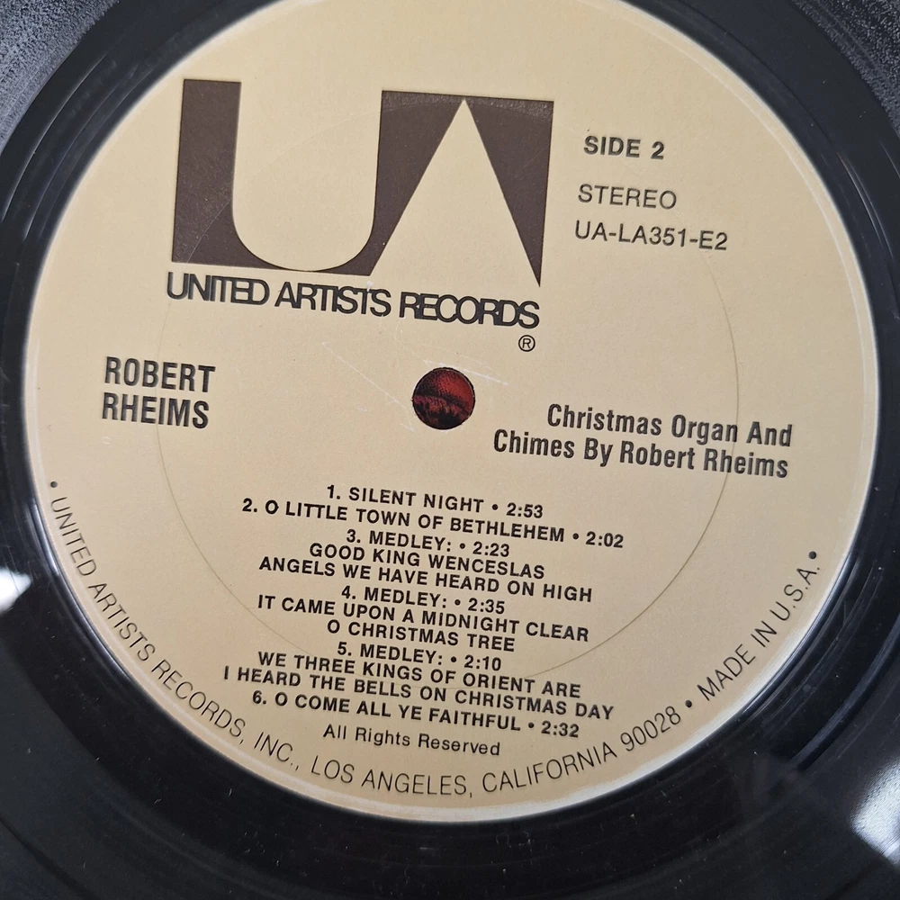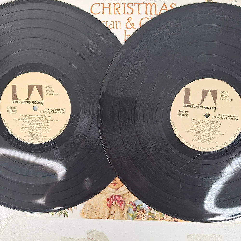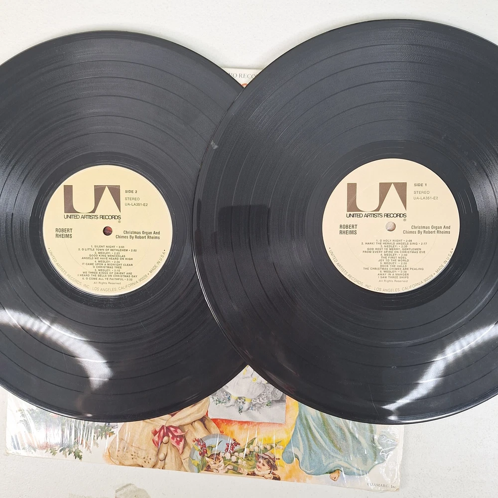 Country/Region of Manufacture:United StatesEdition:First Edition, First PressingArtist:Robert RheimsNumber of Audio Channels:StereoSleeve Grading:Very Good Plus (VG+)Record Size:12"Genre:HolidayRecord Grading:Very Good Plus (VG+)Duration:LPColor:BlackSpeed:33RPMRecord Label:United Artists RecordsInlay Condition:Very Good Plus (VG+)Material:VinylCase Type:Cardboard SleeveInstrument:OrganUPC:Does not applyFeatures:Original CoverType:Double LPgtin13:Does not applyOccasion:ChristmasRelease Year:1974Release Title:Christmas Organ & ChimesSeller Notes:“Plays Well shrink still on jacket”Format:Record