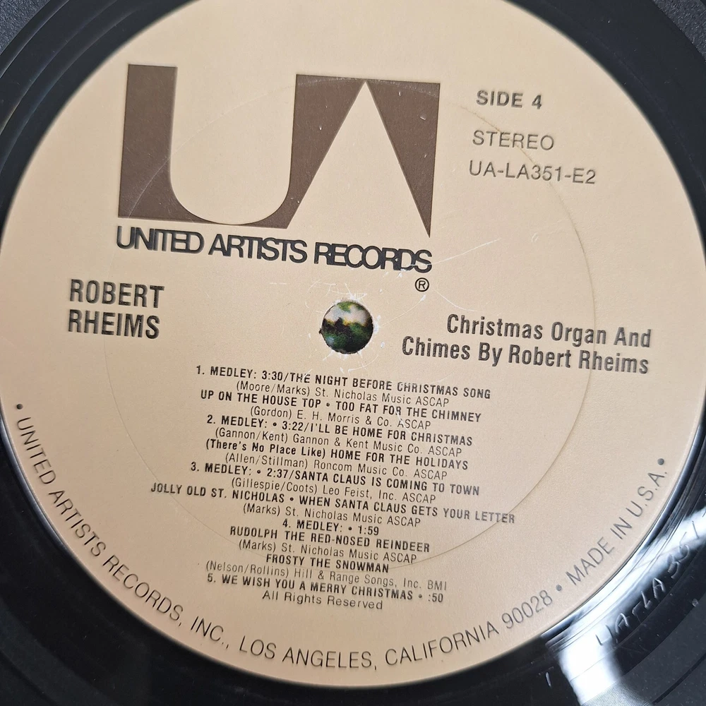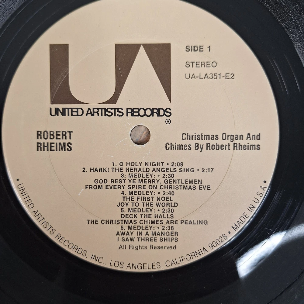 Christmas Organ & Chimes By Robert Rheims 2 X LP United Artists Open Shrink