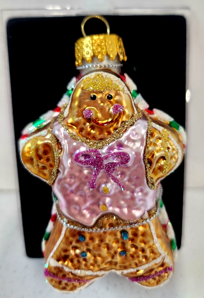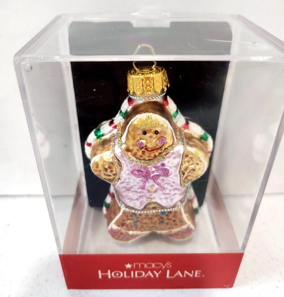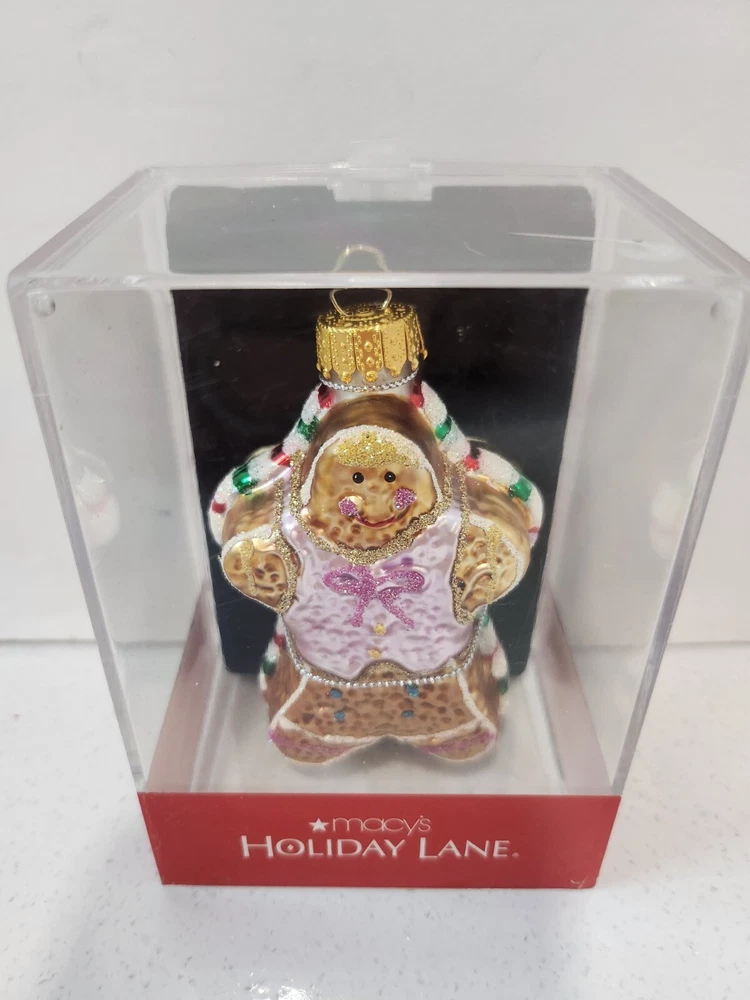 Add a touch of holiday magic to your decorations with this beautiful Christmas Gingerbread Man Ornament from Macy's. Crafted with care in China, this handmade ornament features a charming gingerbread man design that is perfect for any Christmas occasion. Measuring at 3 inches in height, this small ornament is sure to make a big impact on your tree or mantelpiece. The multicolor ornament is made of high-quality Christmas glass and features intricate details that make it both decorative and hanging. Whether you're a collector or just looking for a special ornament to cherish, this Gingerbread Man Ornament is sure to become a treasured addition to your collection.