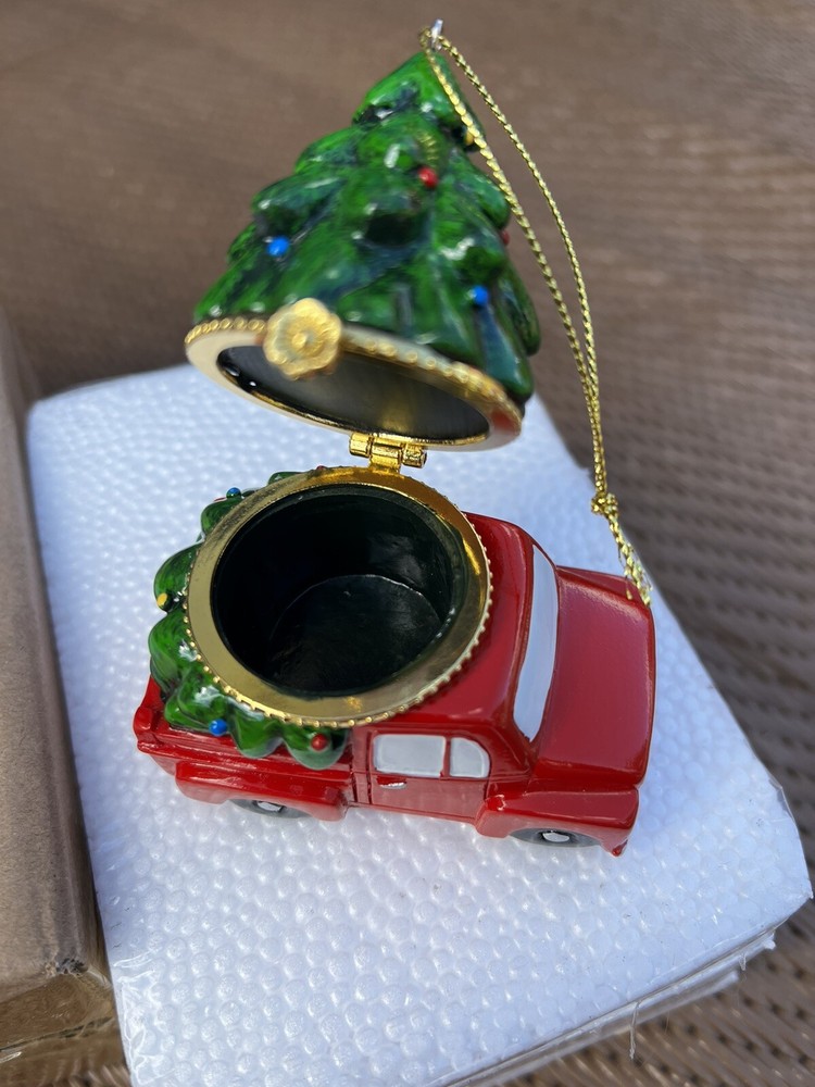 These Christmas ornaments are absolutely charming! The little red truck with a tree in the back is so festive, and the open container is perfect for hiding a sweet note or small gift. I love adding cash as a surprise—it makes a great keepsake that everyone enjoys. The storage containers keep them safe year after year. Such a cute and thoughtful holiday decoration!
