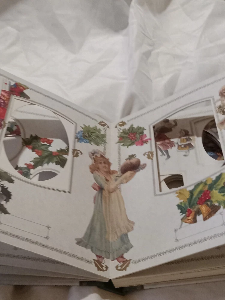 Capture the warmth and nostalgia of the holiday season with the Pepperpot Christmas Photo Album. Designed to hold your cherished memories this decorative album is a delightful way to preserve and showcase your festive photos. Its multicolor Victorian vintage look adds a touch of timeless charm to any Christmas display. Crafted from high-quality paper, this photo album was manufactured between 1990 and 1999, making it a unique piece of memorabilia from the late 20th century. Ideal for holding onto the magic of your holiday traditions, it's a classic addition to your photo album collection. Frames on pages are different sizes so it will hold most size photos. 7.5 inch x 9 inch and 1.5 inch thick Really cute and whimsical cottage core