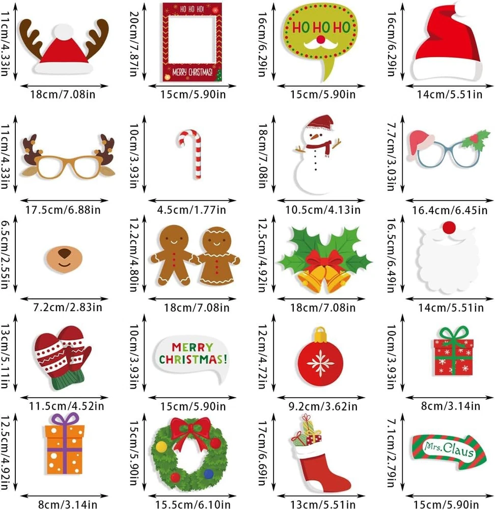 Christmas Photo Booth Props, Selfie Frame Red Green Product Details Material: Paper Color: Red Green Occasion: Christmas Theme: Christmas Brand: KALOR 1 Pcs Photo Props Set: Christmas photo props of various patterns as pictures shown.Including Santa Claus, Christmas trees, gifts, Christmas cap, Reindeer horn, Berry, Christmas stocking, Candy, Christmas sign, eyeglasses, beards, and many more funny props High Quality Material: Our photobooth props are made of good quality cardstock and wooden sticks Easy To Assemble: Christmas photo props kit just stick the bamboo stick on one side of the sticker and the other side on the photo booth props,just so easy Christmas Party Decorations: Highly recommended place party props in a mason jar as a fun table decoration until guests are ready to use. Take entertaining and shareable party photos of your friends and make memories with these stylish photo booth props Christmas Beautiful Background: Decorate your event with these distinctively fancy and eye-catching Christmas Party Supplies 2025. Enjoyment from picture taking will definitely last for long hours. Order now for Christmas photo props You will receive the following as a part of your boxed set:21 Unique Props: Santa Claus, Christmas trees, gifts, Christmas cap, Reindeer horn, Berry, Christmas stocking, Candy, Christmas sign, eyeglasses, beards, and many more funny props Grab one of them and share hilarious selfie photos and videos on tk ig or fb etc to get millions of "likes". 20 Bamboo Dowels20Solid EVA Foam Adhesive Tapes : Simply attach the included bamboo dowels to each prop by using the provided adhesive tapes. For large props pls use 2 of them.Christmas Photo Booth Props create an amazing creative photo background that captures this special moment for you.