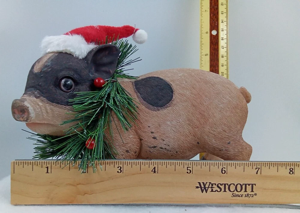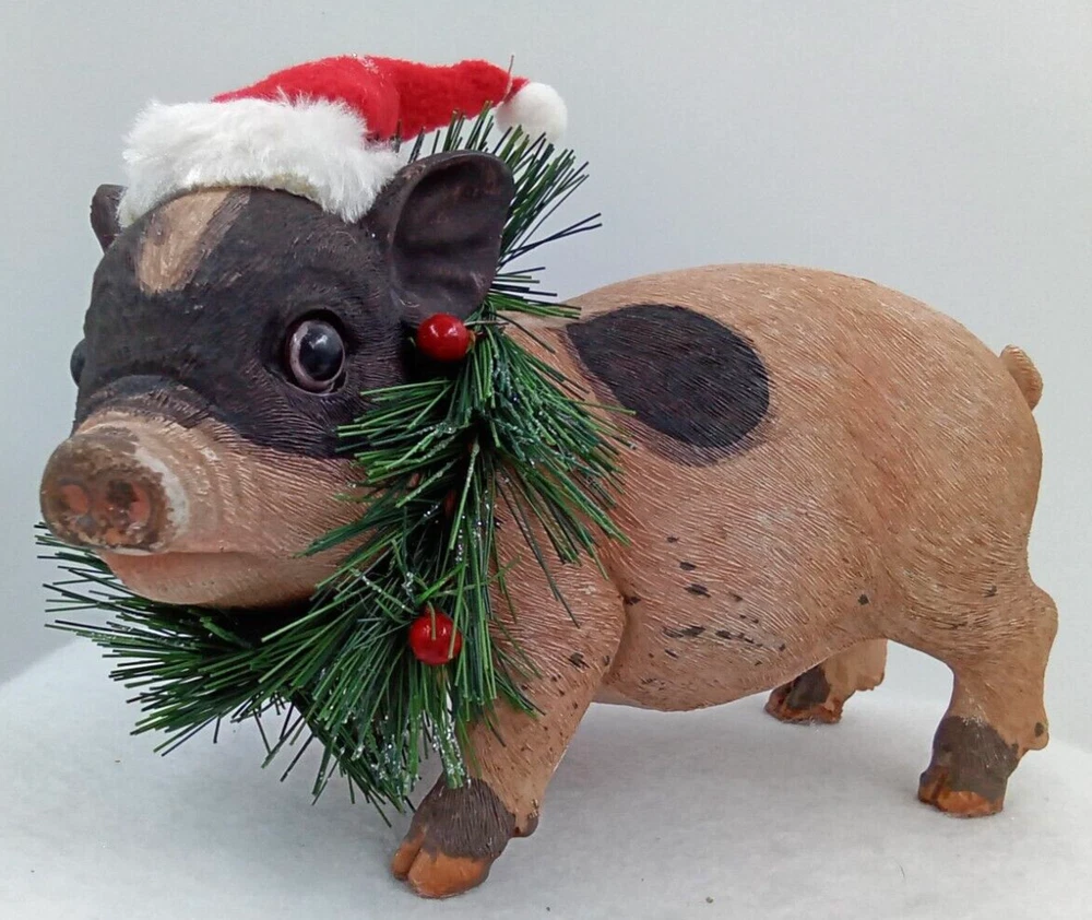 Color: Pink Signed: No Subject: Pig Character: Pig Type: Figurine Handmade: No Material: Resin Character Family: Pig Department: Teens, Adults Brand: Unbranded Finish: Textured Seller Notes: “Really Cute Pig! Love the Face & Butt! Pre-owned! Good Condition!” Country/Region of Manufacture: Unknown Pattern: Animal Print Occasion: Christmas Original/Reproduction: Original Shape: Animal Collection: Animals Style: Traditional Features: Textured, Santa Hat, Wreath Theme: Animals & Dinosaurs