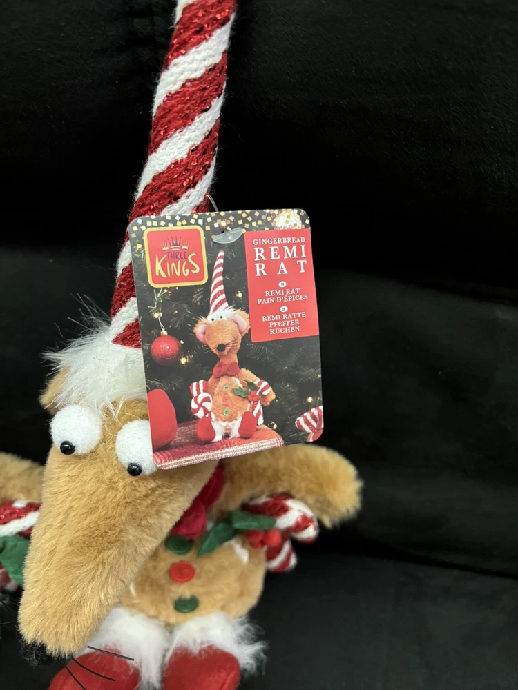 Add a whimsical touch to your holiday decor with the Christmas Rat Decoration. This charming 33cm plush toy is dressed in a festive Santa hat, ready to bring a smile to your face and warmth to your home. Its compact size makes it a perfect accent to any Christmas scene, from your tree to your mantel. Crafted with care from soft plush and fabric materials, this multicoloured rat ornament is part of the Rat Pack character family. It features intricate embroidery and felt details, showcasing the artist's dedication to creating unique, charming pieces. Whether it's for your own collection or as a gift, this rat toy is sure to be a hit at any holiday gathering.