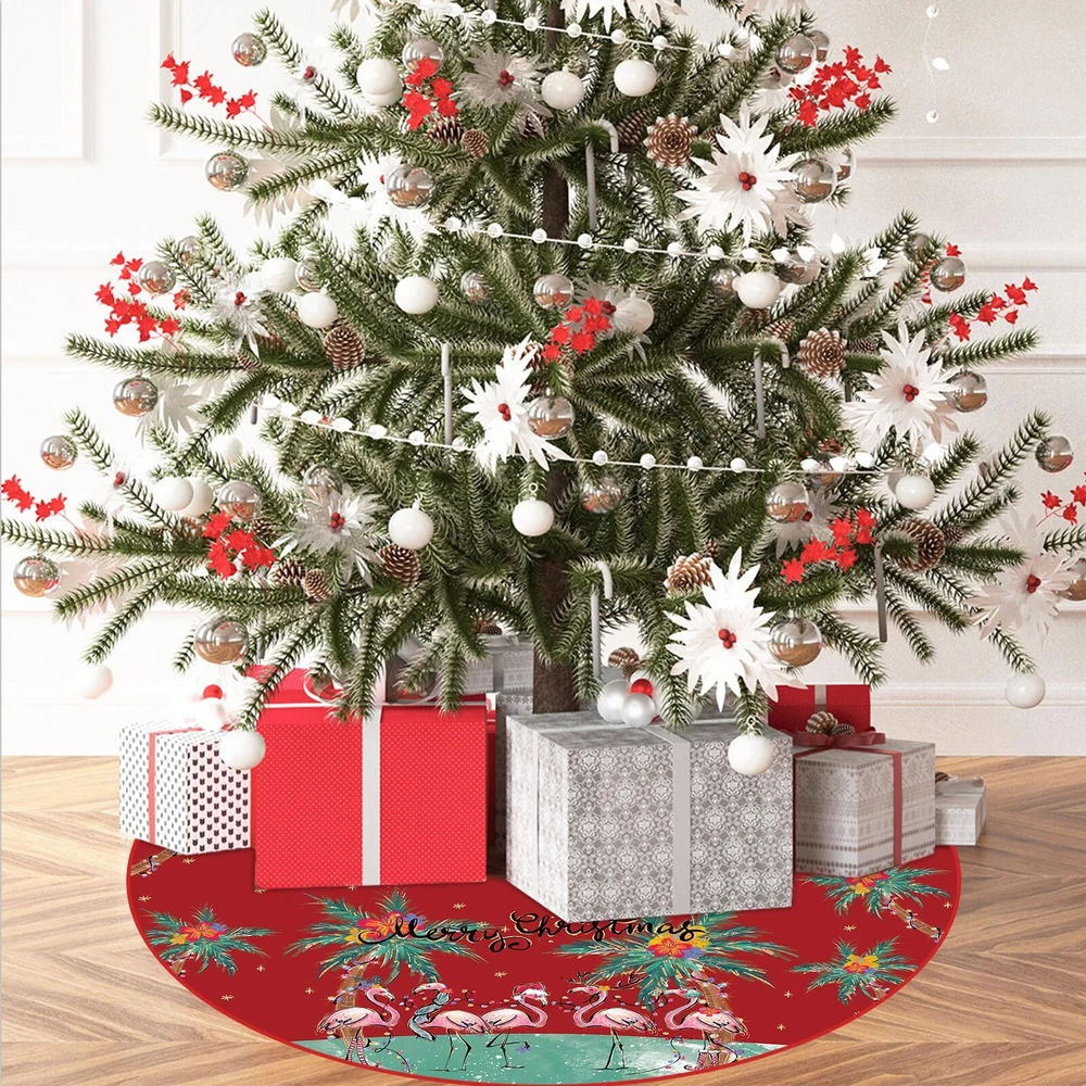 Christmas Red Tree Skirt 48 Inch Flamingo Coastal Christmas in July Xmas Tree Skirt for Christmas Indoor Outdoor Decor HIGH QUALITY MATERIAL: White Christmas tree skirt is made of high quality polyester, well made. The surface is comfortable, soft and gives you an excellent hand feeling experience. FASHIONABLE TREE MAT: The White christmas tree skirt has a diameter of 48 inches (122 cm) and fits any size of Christmas tree. Designed with stylish colors and patterns to match any Christmas tree decoration, making your home more lovely and sweet. MULTIPLE OCCASIONS: You can use this tree skirt to decorate your Christmas tree indoors or outdoors, such as home, living room, bedroom, garden, bar, hotel, school, supermarket or other places. It can also be used as a Christmas gift for your family and friends to increase the festive atmosphere. EASY TO ASSEMBLE AND : 2 ties to secure christmas tree skirt around and in place underneath the christmas tree. Christmas tree skirt has long-lasting durability and can be reused. After the holiday season, you can fold them up for easy storage. SATISFACTION : We have a 24/7 support team, if you aren't 100% satisfied, we will provide you with a or a free - so you can place an order now with confidence and enjoy really great product.