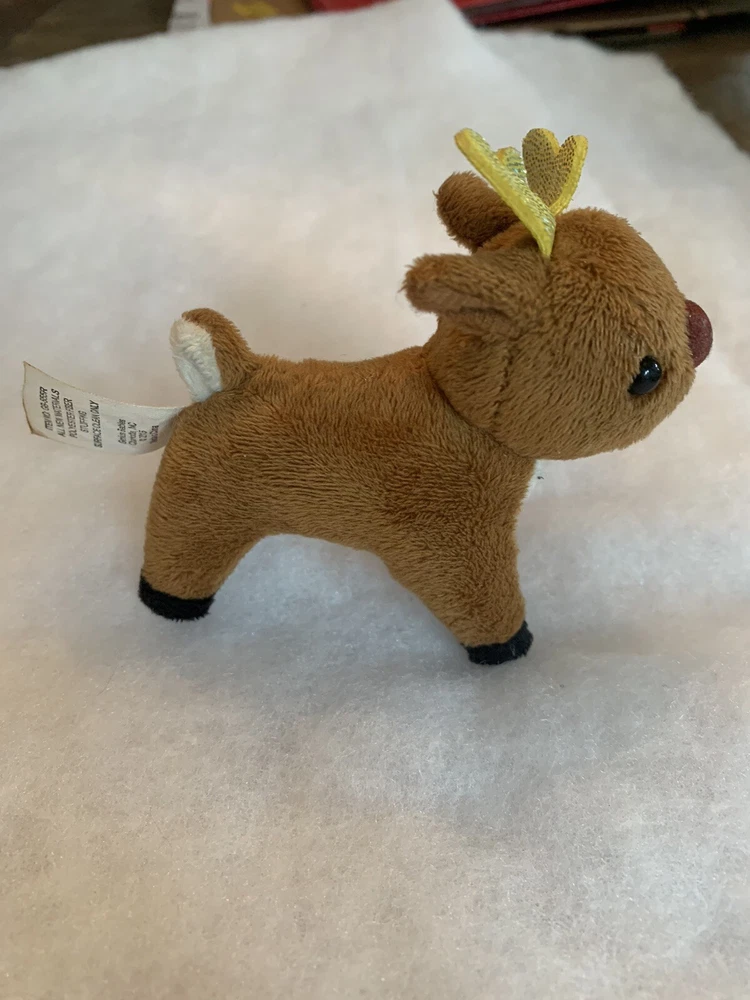This adorable Christmas Reindeer plush toy is a must-have for the holiday season. With its soft and cuddly fabric material, it stands at 4 inches tall and weighs only .4 oz. The mini plush toy is perfect for collectors and children alike, and features a cute reindeer design with a white fur coat and red hat. This Genius Babies plush toy is part of the Animals collection and is a great addition to any holiday decor. It was manufactured in China in 2015 and comes in a unit quantity of 1. Whether you're looking for a festive gift or a cute collectible, this Christmas Reindeer plush toy is sure to bring joy to any setting.