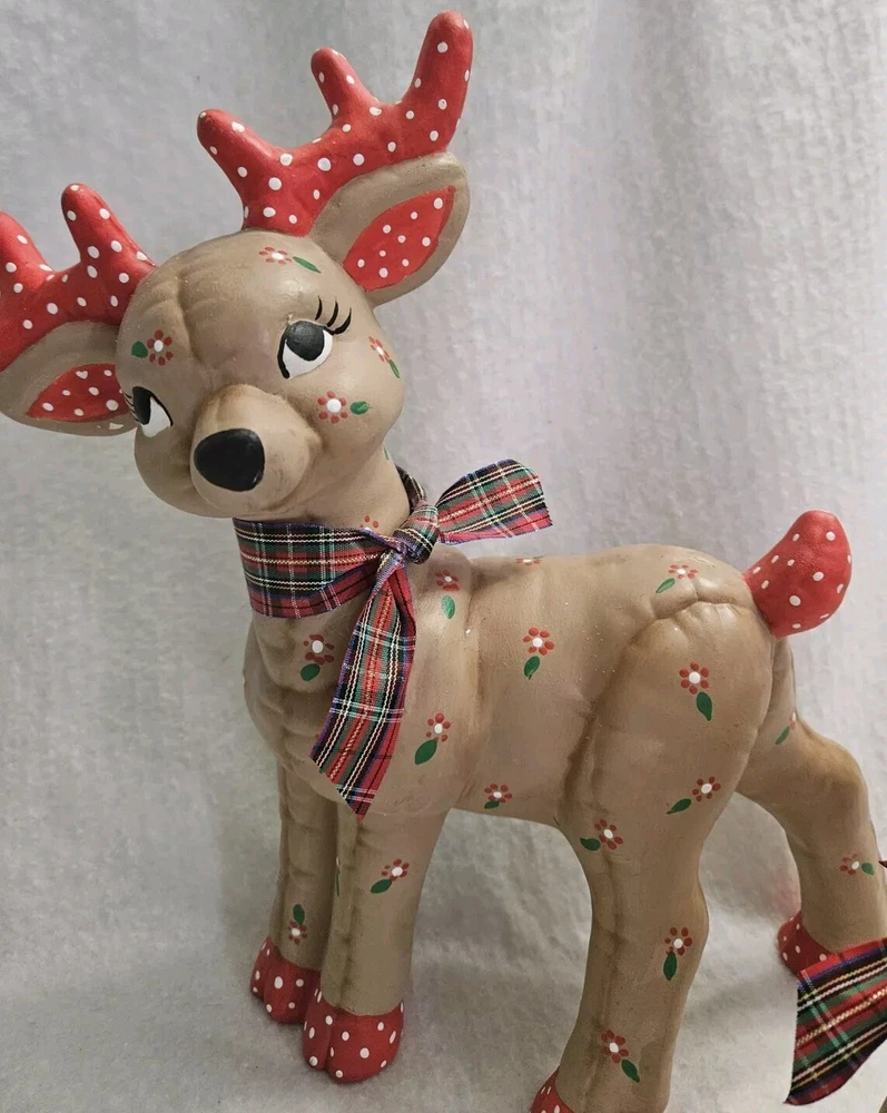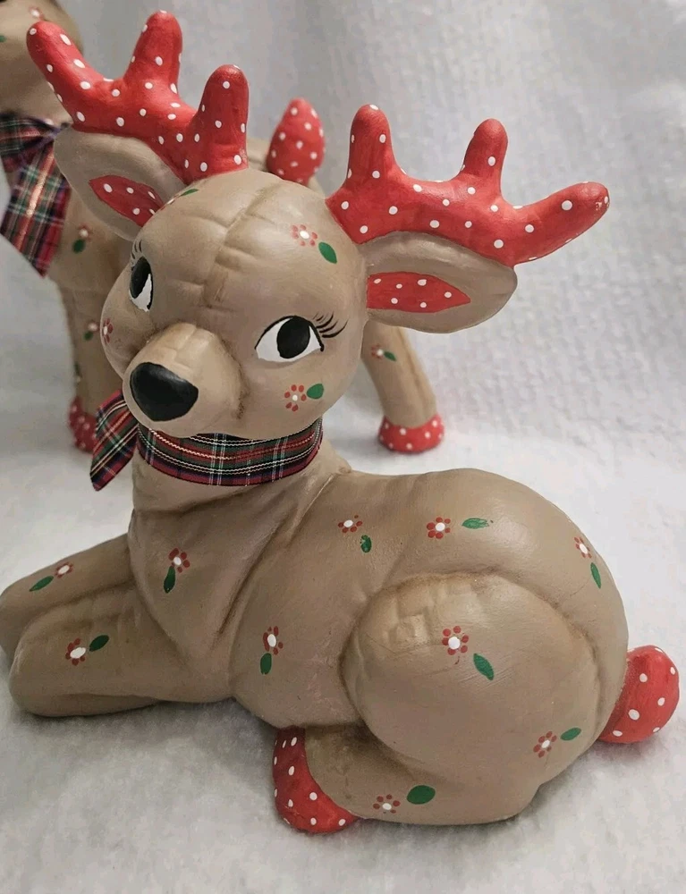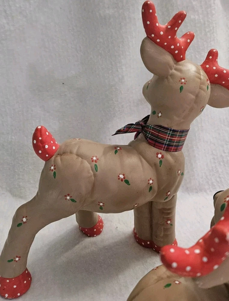 Christmas Reindeer Ceramic 1986 Kimple Mold Figurines Quilted Hand Painted Set 2
