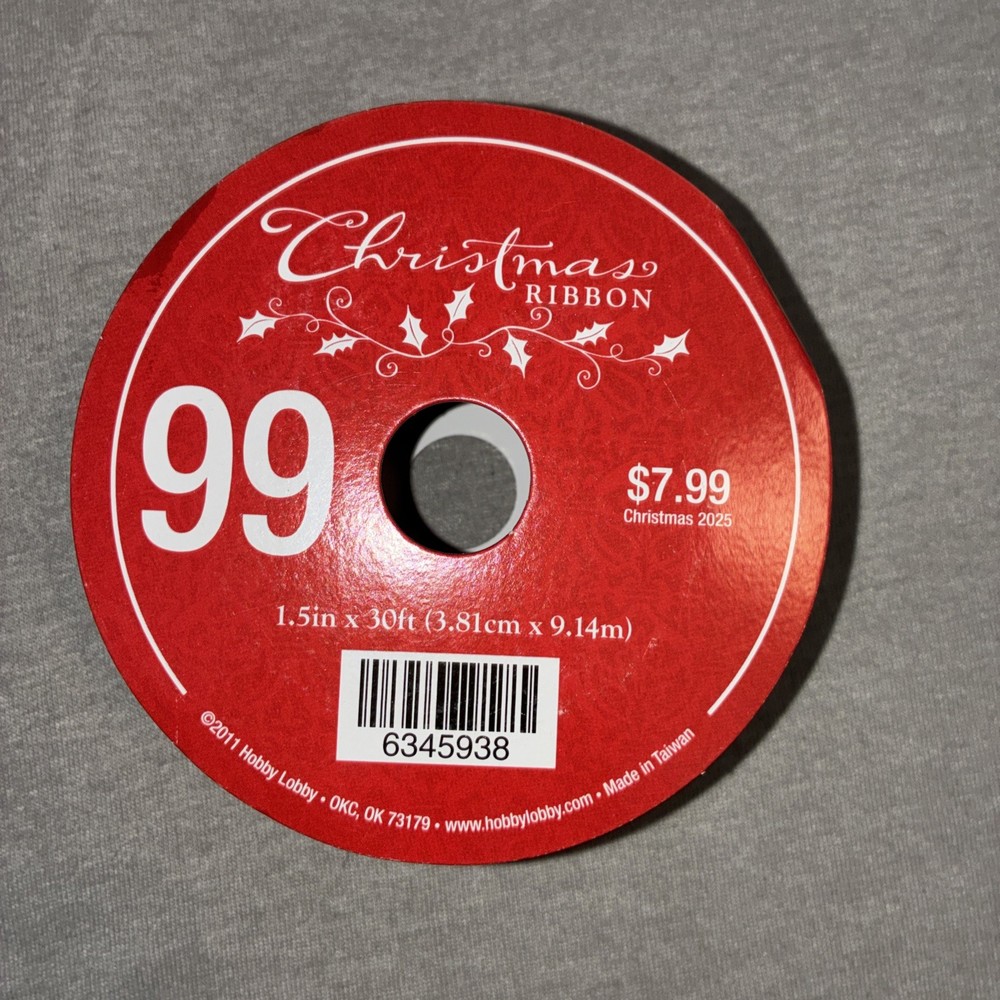 Brand new. Check pictures. The Christmas Ribbon is a light blue nylon ribbon featuring a printed Christmas tree design. With a width of 1 1/2 inches and measuring 30 feet long, this ribbon is perfect for various crafting projects during the holiday season. The ribbon is adorned with glitter for an added festive touch, making it ideal for decorating Christmas gifts, wreaths, and other holiday decorations. Made by Hobby Lobby and originating from Taiwan, this ribbon is a stylish and practical choice for adding a touch of Christmas cheer to your craft projects.