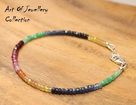 Welcome to visit our ebay store Art Of Jewellery Ebay Genuine 100% Natural Multi Sapphire,Ruby,Emerald And Opal 4 mm Faceted Beads Gemstone Bracelet 7.5" Silver Clasp. AAA+++ Quality Awesome Quality. We believe in delivering the same product which we are offering in the listing. Product Specification Brand -ART OF JEWELLERY Size -7.5 INCHES BRACELET Metal -925 STERLING SILVER CLASP Style -BEAUTIFUL GEMSTONE BEADS BRACELET Condition -BRAND NEW Beads -MULTI SAPPHIRE,RUBY,EMERALD,SAPPHIRE