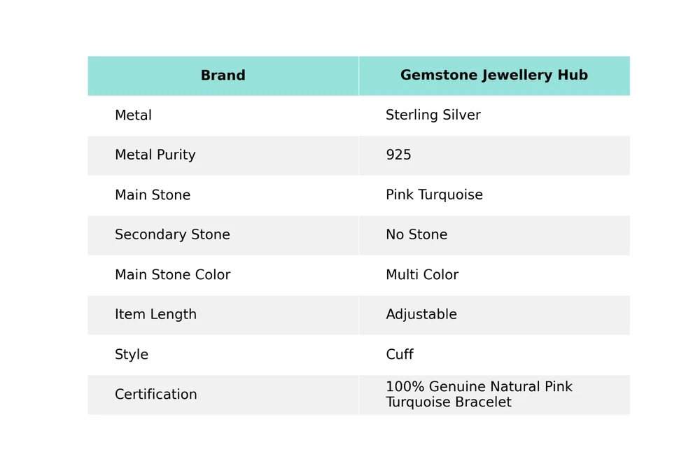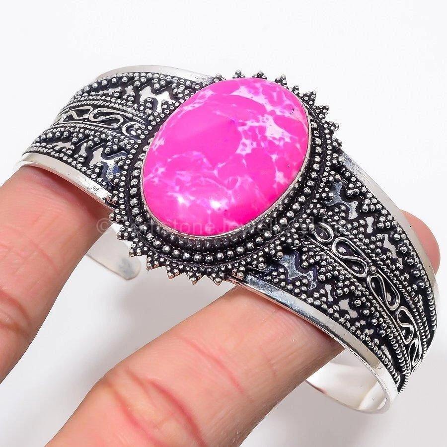 Welcome to Gemstone Treasure Hub Birthday Gift For Her Pink Turquoise Gemstone Cuff Adjustable 925 Silver Handmade Cuff, Sterling Silver Cuff, pink turquoise Cuff, Handcrafted Cuff SKU : MC-814 Gemstone : pink turquoise Stone Shape : As Seen In Picture Metal Purity : 925 Sterling Silver Cuff Length : Adjustable _________________________________________________________________ Shipping Handling - Charge - Free ( Condition apply ) Handling Time - One business day . Delivery Time - 3 to 23 Days ( Various on destination ) Postage service - (A.) India Post - Below $100 order which takes 11 to 23 days . (B.) USPS, Fedex, DHL , Aramax- Order above $100 which takes 3 to 7 days . _________________________________________________________________ Returns - 1. We provide a 100% Money Back Guarantee, excluding shipping costs, within 30 days from the date of item receipt. 2. The item must not be altered or damaged in any way shape or form. 3. Upon receiving these items your payment will be refunded. 4. Kindly reach out to us via email to obtain return instructions prior to initiating the return of merchandise. 5. Please allow up to 1 business day for all returns to receivecredit. 6. Sizing does not affect the return policy. _________________________________________________________________ Payment - We accept PayPal for Payment , should made within three days once buying or winning done , in case of late information expected . _________________________________________________________________ FAQ's - Q.(A) ARE THE ITEMS YOU ARE SELLING BRAND NEW? We exclusively offer brand-new products, refraining from the sale of pre-owned jewelry. Our entire jewelry collection is composed of 100% natural, conflict-free pieces. We do not engage in the trade of imitation or lab-grown gemstones and diamonds. Q.(B) WHAT ARE YOUR BUSINESS HOURS? Our business hours are Monday to Friday, 10:00AM to 6:00PM, excluding holidays. ________________________________________________________________ Gemstone Treasure Hub is dedicated to providing customers with exceptional handmade jewelry crafted to the highest standards of quality. We operate as both connoisseurs and manufacturers of artisanal jewelry, possessing a profound expertise in the art of elevating gemstones to perfectly align with any aesthetic preference. We are pleased to offer you the opportunity to create your own jewelry collection, adorned with authentic and exquisite natural gemstones. Our team of highly skilled artisans painstakingly crafts each individual jewelry piece, ensuring the creation of products with a unique identity that feature genuine gemstones. The jewelry articles presented on our website accurately depict the precise pieces that you will receive.