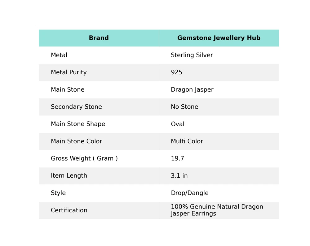 Welcome to Gemstonejewelleryhub Birthday Gift For Her Dragon Jasper Gemstone Drop/Dangle Earrings 925 Silver Handmade Earrings, Sterling Silver Earrings, Dragon Jasper Earrings, Handcrafted Earrings These beautiful earrings are a perfect addition to any jewelry collection. The oval-shaped dragon jasper gemstone is set in a silver channel-set, with a drop/dangle style that is sure to catch the eye. The earrings are handcrafted and engraved, making them a unique and special piece. As seen in the picture, the earrings are eye-clean and feature a multi-color dragon jasper gemstone, with no secondary stones. The earrings are 3.1 inches in length and are perfect for any occasion, whether it be an engagement, wedding, anniversary, or birthday. These earrings are nickel-free and come with a seller warranty and are signed. Add a touch of bohemian, ethnic, and healing themes to your outfit with these beautiful earrings. SKU : AAE-1508 Gemstone : Dragon Jasper Stone Shape : Oval Metal Purity : 925 Sterling Silver Length : 3.1 Inches Width : Inches ___________________________________________________________________ Shipping Handling - Charge - Free ( Condition apply ) Handling Time - One business day . Delivery Time - 3 to 23 Days ( Various on destination ) Postage service - (A.) India Post - Below $100 order which takes 11 to 23 days . (B.) USPS, Fedex, DHL , Aramax- Order above $100 which takes 3 to 7 days . _________________________________________________________________ Returns - 1. We provide a 100% Money Back Guarantee, excluding shipping costs, within 30 days from the date of item receipt. 2. The item must not be altered or damaged in any way shape or form. 3. Upon receiving these items your payment will be refunded. 4. Kindly reach out to us via email to obtain return instructions prior to initiating the return of merchandise. 5. Please allow up to 1 business day for all returns to receivecredit. 6. Sizing does not affect the return policy. _________________________________________________________________ Payment - We accept PayPal for Payment , should made within three days once buying or winning done , in case of late information expected . _________________________________________________________________ FAQ's - Q.(A) ARE THE ITEMS YOU ARE SELLING BRAND NEW? We exclusively offer brand-new products, refraining from the sale of pre-owned jewelry. Our entire jewelry collection is composed of 100% natural, conflict-free pieces. We do not engage in the trade of imitation or lab-grown gemstones and diamonds. Q.(B) WHAT ARE YOUR BUSINESS HOURS? Our business hours are Monday to Friday, 10:00AM to 6:00PM, excluding holidays. ________________________________________________________________ Gemstonejewelleryhub is dedicated to providing customers with exceptional handmade jewelry crafted to the highest standards of quality. We operate as both connoisseurs and manufacturers of artisanal jewelry, possessing a profound expertise in the art of elevating gemstones to perfectly align with any aesthetic preference. We are pleased to offer you the opportunity to create your own jewelry collection, adorned with authentic and exquisite natural gemstones. Our team of highly skilled artisans painstakingly crafts each individual jewelry piece, ensuring the creation of products with a unique identity that feature genuine gemstones. The jewelry articles presented on our website accurately depict the precise pieces that you will receive.