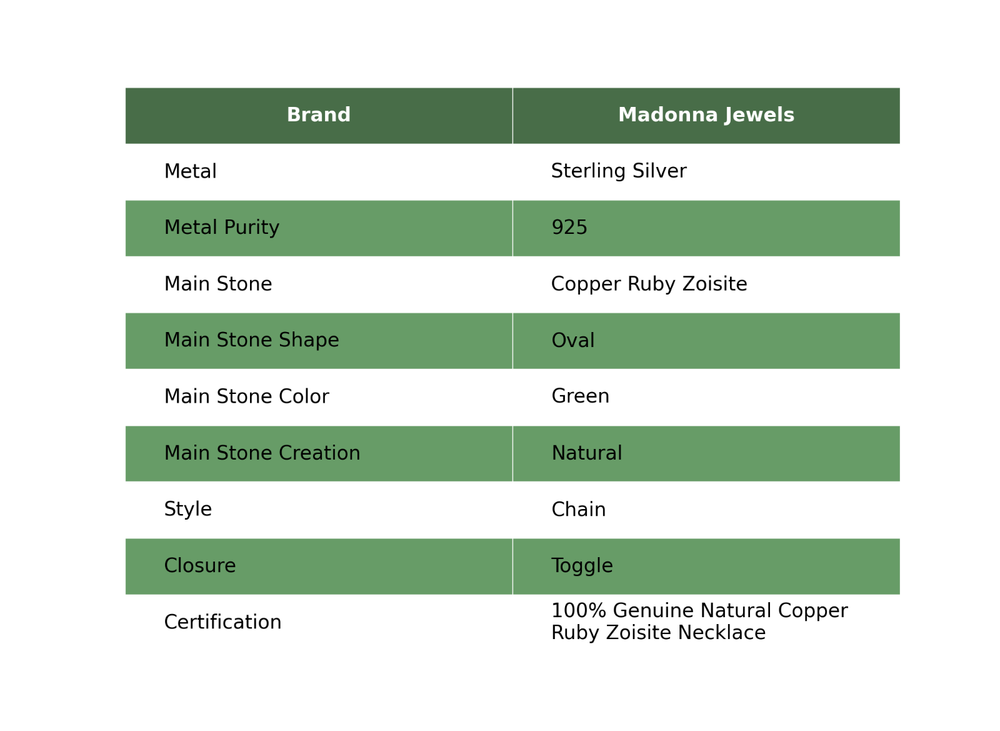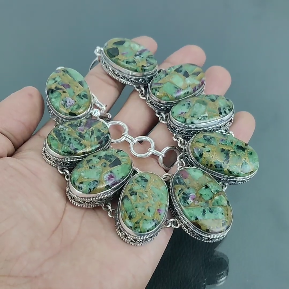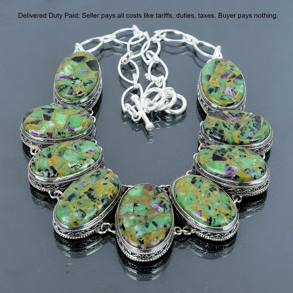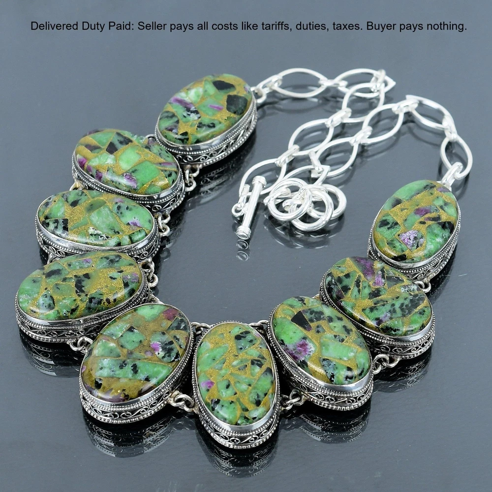 Welcome to Madonna Jewels Christmas Sale 925 Silver Oval Copper Ruby Zoisite Stone Vintage Chain Necklace Handmade Necklace, Sterling Silver Necklace, Copper Ruby Zoisite Necklace, Handcrafted Necklace SKU : VN-1307 Gemstone : Copper Ruby Zoisite Stone Shape : Oval Metal Purity : 925 Sterling Silver Necklace Length : Inches Adjustable : Yes Silver Jewelry is a popular choice for many people due to its unique properties and numerous benefits. Here are some of the key properties and benefits of wearing silver jewelry: Properties: Durability: Silver is a durable metal that can withstand regular wear and tear. Malleability: Silver is highly malleable, which means it can be easily shaped and molded into various designs. Conductivity: Silver is an excellent conductor of heat and electricity. Anti-bacterial: Silver has natural anti-bacterial properties, which can help prevent the growth of harmful bacteria. Benefits: Aesthetic appeal: Silver jewelry is known for its beauty and versatility, and can be worn with a variety of outfits and styles. Hypoallergenic: Silver is generally hypoallergenic, which means it is unlikely to cause an allergic reaction in most people. Healing properties: Some people believe that wearing silver jewelry can help with various physical and emotional conditions, such as arthritis, anxiety, and depression. Spiritual significance: Silver has been used in various cultures for its spiritual and symbolic significance, and wearing silver jewelry can help to connect with these traditions. Investment value: Silver is a precious metal that retains its value over time, and investing in silver jewelry can be a smart financial decision. Overall, silver jewelry offers a unique combination of beauty, durability, and benefits, making it a popular choice for people around the world. For Mother's Day Gift For Father's Day Gift For Promise For Valentine' Day For Halloween Party For Christmas Day Gift For New Year Party For Mom For Her If you can't find the information you need or need some advice for your design? Feel free to contact us. We are fast to reply :) All our work is made by hand with Love and Care in our workshop Thank you so much for visiting and hope you enjoy shopping with us Madonna Jewels is dedicated to providing customers with high-quality sterling silver jewelry. As a manufacturer of handmade jewelry, we offer an extensive range of silver gemstone jewelry that demonstrates our exceptional craftsmanship. We are skilled in adorning gemstones to complement any style, and we give you the freedom to design your own jewelry collection with dazzling, natural, and genuine gemstones. Our talented craftsmen carefully handcraft each jewelry piece, ensuring that it is unique and made with authentic gemstones. The jewelry item you see on our website is precisely the same one you will receive.