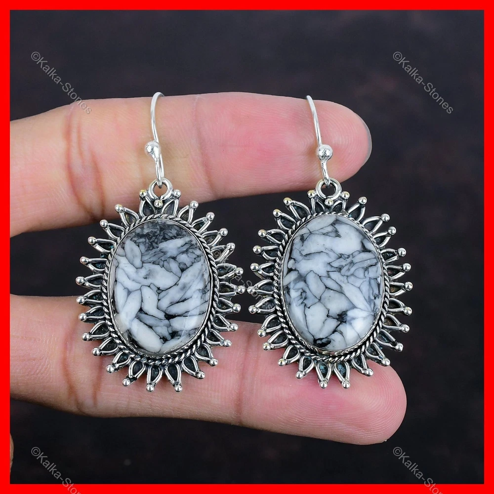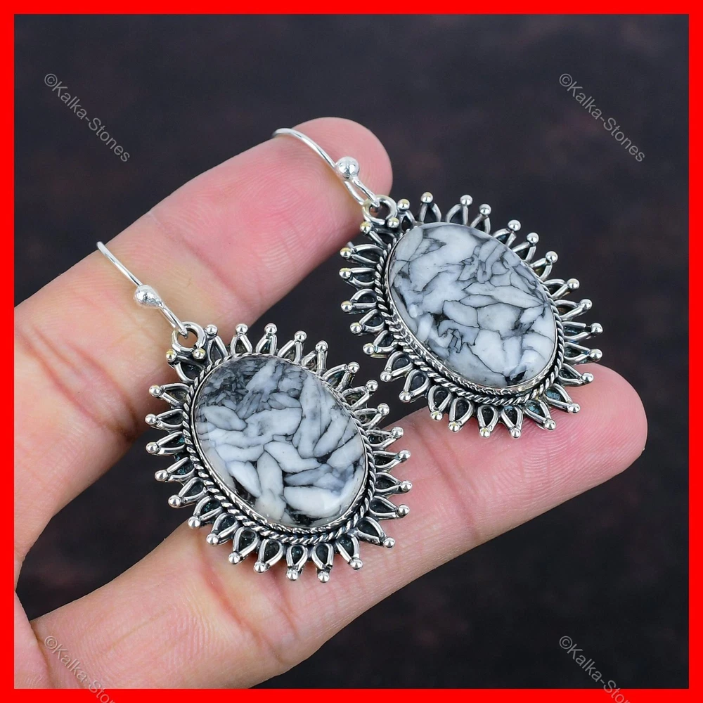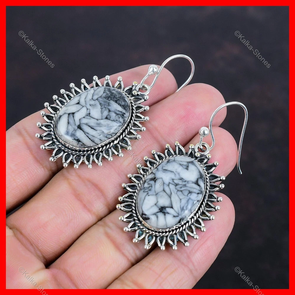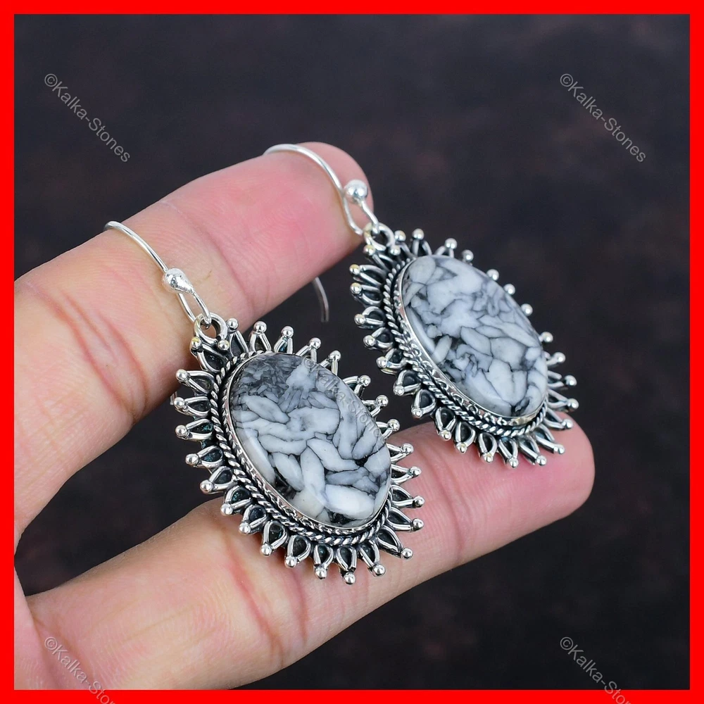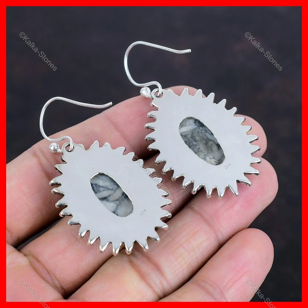 Christmas Sale 925 Silver Pinolith Jasper Stone Elegant Drop Dangle New Earrings