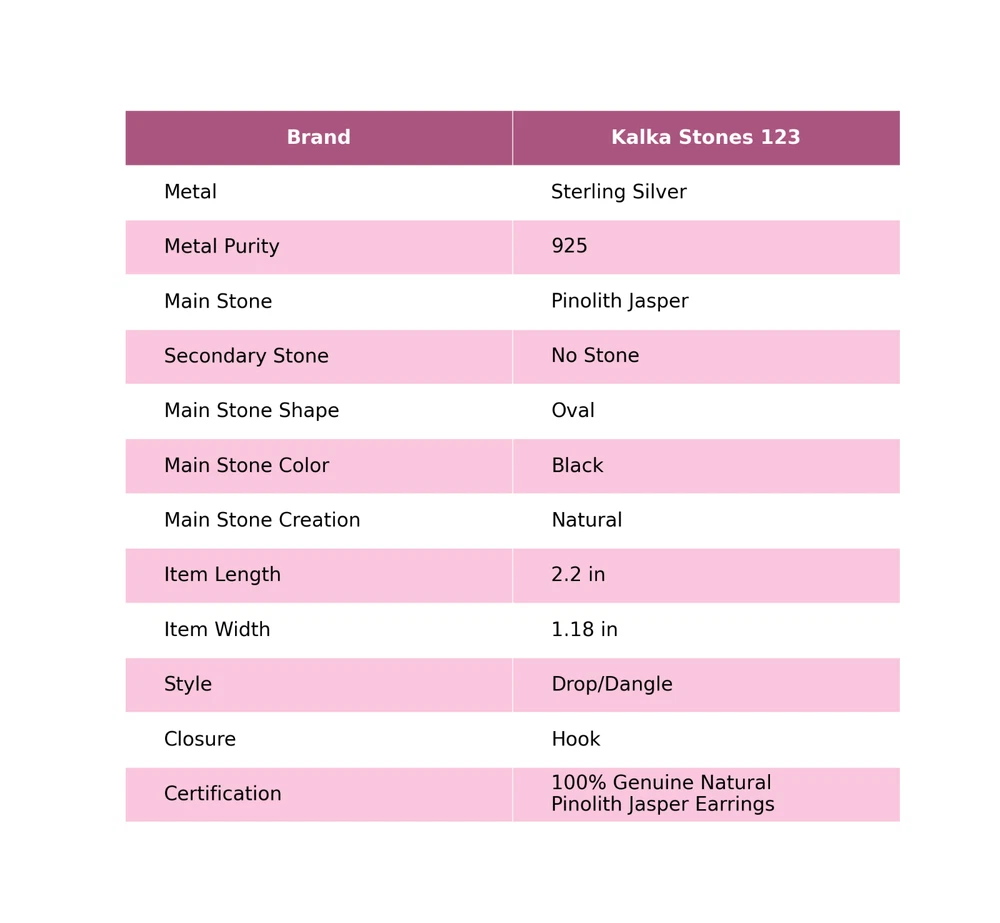 Note : Due to the natural formation of this gemstone. Slight variation in design and color are to be expected. Welcome to Kalka Stones Christmas Sale 925 Silver Pinolith Jasper Stone Elegant Drop Dangle New Earrings Handmade Earrings, Sterling Silver Earrings, Pinolith Jasper Earrings, Handcrafted Earrings SKU : KE-1459 Gemstone : Pinolith Jasper Stone Shape : Oval Metal Purity : 925 Sterling Silver Length : 56 $Earrings Unit$ Width : 30 $Earrings Unit$ Silver Jewelry is a popular choice for many people due to its unique properties and numerous benefits. Here are some of the key properties and benefits of wearing silver jewelry: Properties: Durability: Silver is a durable metal that can withstand regular wear and tear. Malleability: Silver is highly malleable, which means it can be easily shaped and molded into various designs. Conductivity: Silver is an excellent conductor of heat and electricity. Anti-bacterial: Silver has natural anti-bacterial properties, which can help prevent the growth of harmful bacteria. Benefits: Aesthetic appeal: Silver jewelry is known for its beauty and versatility, and can be worn with a variety of outfits and styles. Hypoallergenic: Silver is generally hypoallergenic, which means it is unlikely to cause an allergic reaction in most people. Healing properties: Some people believe that wearing silver jewelry can help with various physical and emotional conditions, such as arthritis, anxiety, and depression. Spiritual significance: Silver has been used in various cultures for its spiritual and symbolic significance, and wearing silver jewelry can help to connect with these traditions. Investment value: Silver is a precious metal that retains its value over time, and investing in silver jewelry can be a smart financial decision. Overall, silver jewelry offers a unique combination of beauty, durability, and benefits, making it a popular choice for people around the world. For Mother's Day Gift For Father's Day Gift For Promise For Valentine' Day For Halloween Party For Christmas Day Gift For New Year Party For Mom For Her If you can't find the information you need or need some advice for your design? Feel free to contact us. We are fast to reply :) All our work is made by hand with Love and Care in our workshop Thank you so much for visiting and hope you enjoy shopping with us Kalka Stones is dedicated to providing customers with high-quality sterling silver jewelry. As a manufacturer of handmade jewelry, we offer an extensive range of silver gemstone jewelry that demonstrates our exceptional craftsmanship. We are skilled in adorning gemstones to complement any style, and we give you the freedom to design your own jewelry collection with dazzling, natural, and genuine gemstones. Our talented craftsmen carefully handcraft each jewelry piece, ensuring that it is unique and made with authentic gemstones.